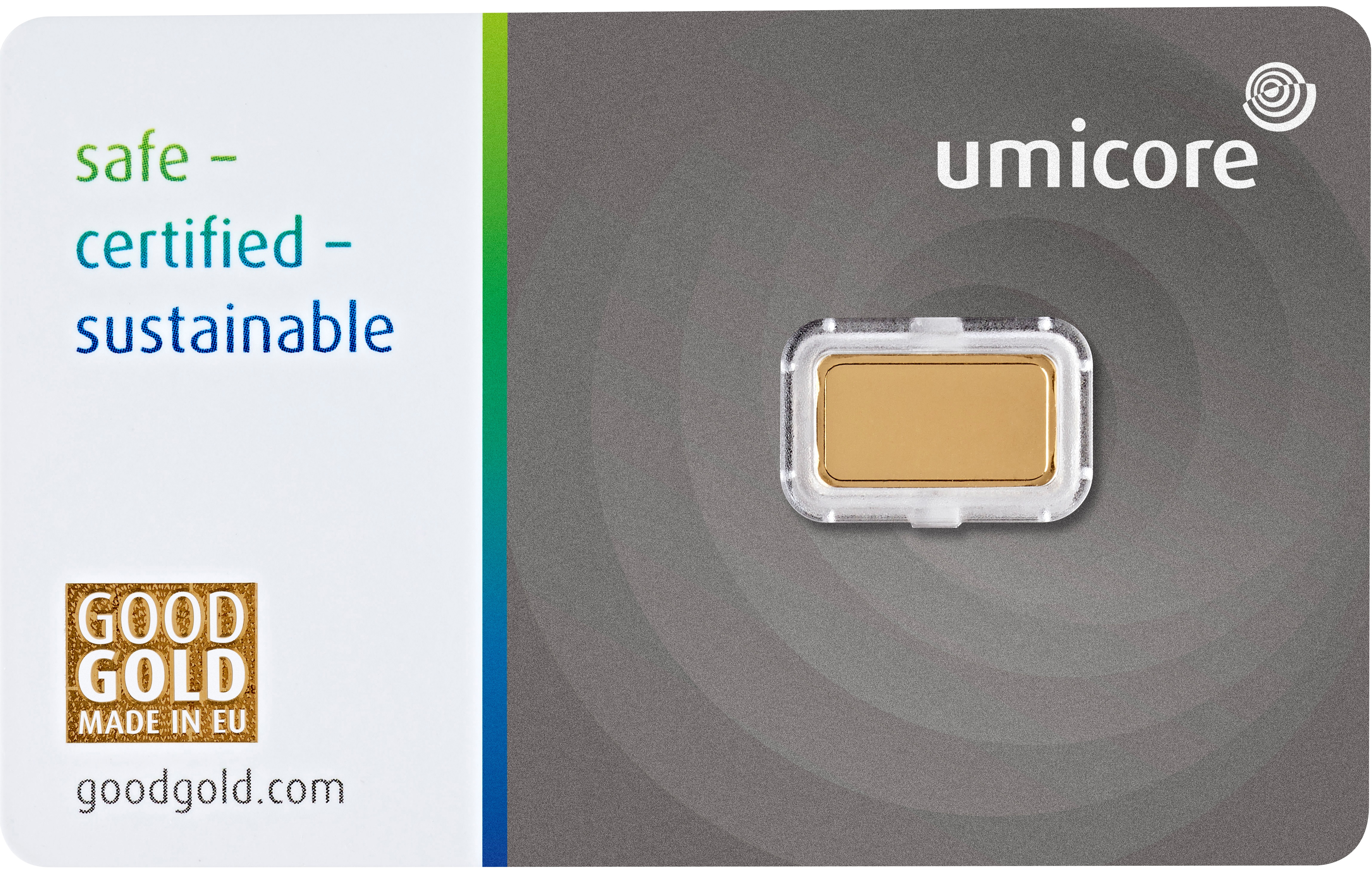 Barren mit einem Gewicht von 1g Feingold werden geprägt und meist in Folie verschweißt. Bei uns erhalten Sie 1 Gramm Goldbarren vom Hersteller Umicore in einer Blisterkarte mit Zertifikat und Seriennummer, preisgünstige Neuware. Die Verpackung sieht nicht nur ansprechend aus und ist mit zwei Schweißnähten besonders stabil, sie besteht zudem aus dem umweltfreundlichen Kunststoff PET. Der Aufpreis auf den reinen Metallwert bei 1-g-Barren ist aufgrund der prozentualen Herstellungskosten höher als bei größeren Einheiten. Für größere Goldinvestitionen sind 1g Barren ungeeignet, gerne aber als Geschenkbarren und "Kleingeld oder Tauschmittel" für Krisenzeiten willkommen. Das Unternehmen produziert und verkauft seit mehr als 170 Jahren neben Gold auch viele weitere wertvolle Edelmetalle. Diese werden in der konzerneigenen Recyclinganlage in Hoboken, Belgien, unter anderem aus elektronischen Abfällen gewonnen und umweltschonend in den Kreislauf zurückgeführt. Umicore-Goldbarren stehen schon immer für eine sichere Investition verbunden mit Tradition und Verantwortung für die Zukunft. Jetzt gibt es die Umicore-Goldbarren in den Größen 1g bis 100g auch in einer attraktiven Verpackung mit Echtheitszertifikat und Sicherheitsfeature. Für Käufer und Anleger lässt sich durch das Zertifikat nun noch leichter feststellen, dass es sich dabei um echtes Umicore-Gold handelt. Für zusätzliche Sicherheit sorgt nicht nur die stabile, transparente Verpackung, die den Barren vor äußeren Einflüssen schützt, sondern auch ein Hologramm als optisches Sicherheitsmerkmal, um den Schutz vor Fälschungen zu gewährleisten. Natürlich erfüllen Umicores Edelmetallbarren zudem höchste Qualitäts- und Nachhaltigkeitsstandards und sind deshalb mit den wichtigsten branchenspezifischen Zertifizierungen wie dem "LBMA Good Delivery-Status" sowie dem Zertifikat des "Responsible Jewellery Council" ausgezeichnet. Weiterführende Informationen zu den neuen Umicore-Goldbarren und zur Edelmetallgewinnung bei Umicore finden Sie unter www.gutesgold.de.