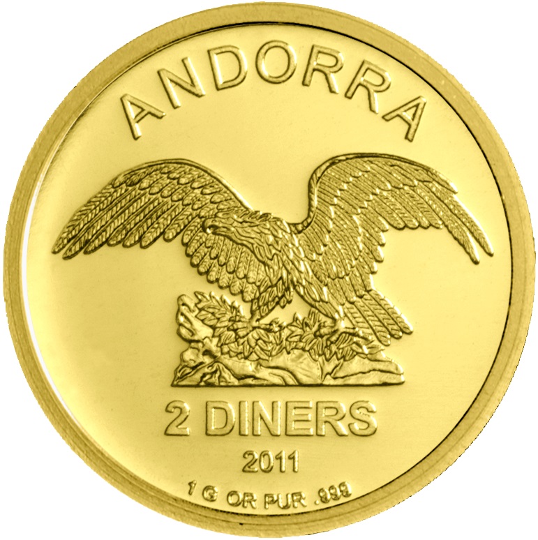Die 1g Andorra Eagle Anlagemünze ist eine Sammelmünze, deren Prägung als Agenturmünzen von verschiedenen Prägeanstalten unter Lizenz des Zwergstaats Andorra zwischen Frankreich und Spanien erfolgt. Die Andorra Eagle ist auch eine der wenigen Goldmünzen mit einem Gewicht von nur 1 g, Münzen in dieser kleinen Größenordnung werden nur selten hergestellt. Des Weiteren ist die Währung, die mit dem Nennwert von 2 Diners angegeben wird, eine nicht existente Phantasiewährung, denn die reguläre Währung in Andorra ist der Euro. Da es sich um eine reine Bullionmünze handelt, spielt dies jedoch keine Rolle, denn der Preis für die Andorra Eagle Goldmünze 1 g ist am tagesaktuellen Goldpreis orientiert und enthält keine Mehrwertsteuer.