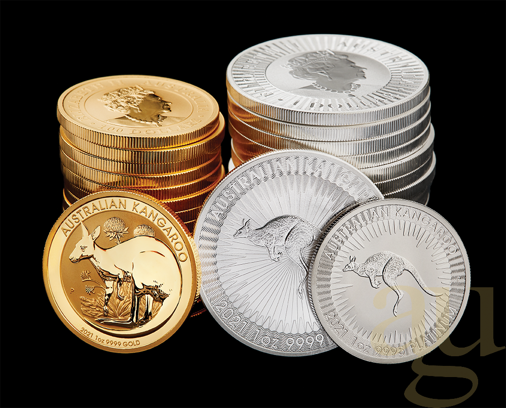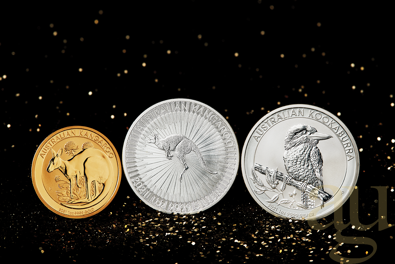Das australische Känguru bzw. Nugget ist die älteste Münzserie der bereits 1899 eröffneten australischen Perth Mint. Die Münze wurde das erste Mal im Jahre 1987 in den vier Standardgrößen 1/10 Unze, 1/4 Unze, 1/2 Unze sowie 1 Unze in der Reinheit 99,99% geprägt und ist somit nach der Maple-Leaf-Münze in Gold die zweitälteste Anlagemünze aus reinem Gold. Aufgrund der hohen Bekanntheit, der sehr hohen Prägequalität und des günstigen Preises erfreut sich das australische Goldkänguru weltweit bei Anlegern und Investoren höchster Beliebtheit. Die Auflage des australischen Kängurus bzw. Nuggets war in den ersten drei Jahren der Produktion, also bis einschließlich 1989 unbegrenzt. Seit 1990 wurde die Auflage der 1 Unzen Münzen dann limitiert. Die gesetzte Limitierung schwankte in den darauffolgenden vier Jahren zwischen jährlich 250.000 und 300.000 Stück bis 1994 das Prägelimit einheitlich auf jährlich 350.000 Stück erhöht wurde. Diese Auflage wurde seitdem jedoch nie gänzlich ausgeprägt und schwankte zwischen 31.206 (im Jahr 2001) und 298.016 (im Jahr 2009) Stück pro Jahr. Insgesamt wurden bis Ende 2011 bereits knapp mehr als 3,5 Millionen der 1 Unzen Münzen produziert. Die detaillierten Prägezahlen können Sie jeweils direkt hier einsehen. Neben den von Anfang an offerierten Größen von 1/10 Unze bis zu 1 Unze, wurde die australischen Känguru- bzw. Nuggetserie noch weiter ausgebaut. Ab 1990 wurde die Goldmünze auch in der Größe 1/20 Unze ausgegeben und jährlich auf 200.000 Stück limitiert. Das Zwanzigstel wurde - wohl aufgrund stark rückläufiger Verkaufszahlen - letztmalig 2009 geprägt und die Produktion dann eingestellt. Ebenfalls seit 1990 wurden die Größen 2 Unzen, 10 Unzen sowie 1 Kilogramm mit unbegrenzter Auflage eingeführt. Wie die Zwanzigstel wurde 2009 auch die Produktion der 2 Unzen und 10 Unzen Münzen wieder eingestellt, sodass neben der 1-Kilogramm-Variante derzeit wieder nur die vier ursprünglichen Standardgrößen angeboten werden. Auf der Vorderseite der Münze ist das jährlich wechselde Motiv des australischen Kängurus abgebildet. Neben dem Schriftzug 'Australian Kangaroo' sowie das für die Perth Mint typische Mint-Mark 'P' befinden sich zusätzlich die Initialen des jeweiligen Designers, das Prägejahr, das Gewicht '1 KILO', die Feinheit '9999' und das Metall 'Gold'. Auf der Rückseite der Münze ist nebem dem Nennwert '3000 Dollars' auch das Ausgabeland 'Australia' eingeprägt. Außerdem ist die Inschrift 'Elizabeth II', ein Profilbild derselbigen, sowie die Initialen 'IRB' des Graveurs Ian Rand-Broadley zu finden. Die Münzen werden in allen Einheiten von 1/20 Unze bis 1 Kilogramm einzeln in einer transparenten Hartplastikkapsel ausgeliefert. Bei Auragentum können Sie die australischen Goldkängurus zu stets aktuellen Preisen online oder in unserem Ladengeschäft in Erding, nähe München, gegen Barzahlung kaufen und verkaufen.