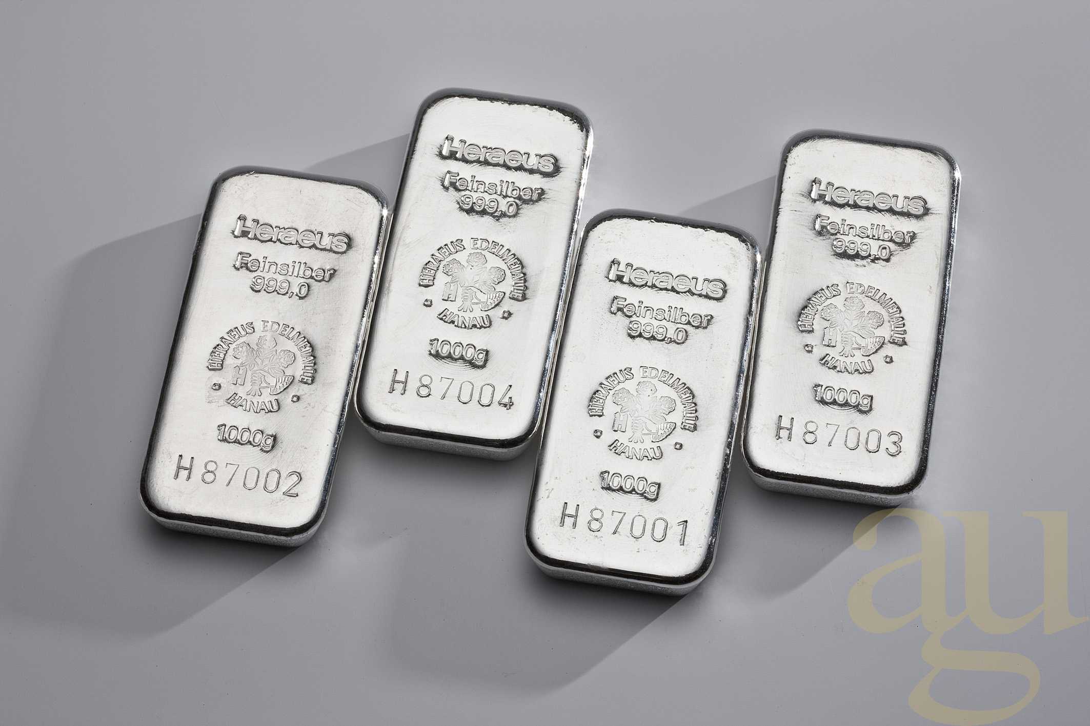 Die Firma Heraeus mit Sitz in Hanau bei Frankfurt am Main ist weltweit tätig und befindet sich seit mehr als 160 Jahren in Familienbesitz. Heraeus gehört gemeinsam mit seiner in der Schweiz ansässigen Firmenbeteiligung Argor-Heraeus zu den größten Herstellern von Edelmetallbarren in Europa und der Welt. Die Silberbarren aus dem Hause Heraeus sind von 5 Gramm bis zu 15 Kilogramm erhältlich. Die 5g bis 250g Silberbarren werden aus einem dicken Silberblech ausgestanzt und weisen teilweise noch die stanztypischen Grate an den Rändern auf. Alle anderen Größen werden im Gussverfahren hergestellt, wobei die Eigenschaften eines typischen Gussteiles die typisch konische Form bzw. Rundungen und dergleichen aufweisen.