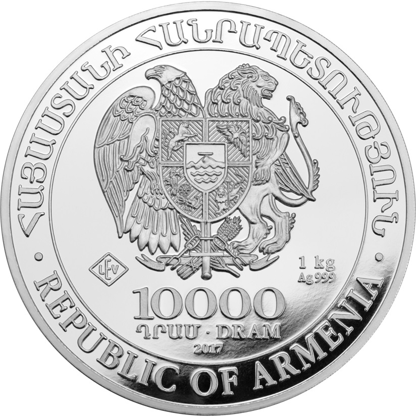 Das Münzbild bestimmt einerseits das Staatswappen Armeniens, der Nominalwert 10 000 Dram sowie die Reinheit 1 Kg. Ag .999 und das Prägejahr. In Armenien ist die Bullionmünze offizielles Zahlungsmittel und darf somit in Deutschland mit dem verminderten Steuersatz von 7% verkauft werden. Die Umschrift "Republic Of Armenia" rundet das Gesamtbild ab, der Schriftzug ist in zwei Sprachen zu finden (englisch und armenisch).