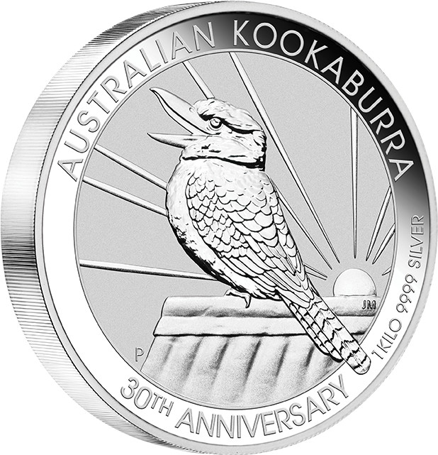 Die australische Prägestätte Perth Mint stellte die 1 Kilogramm Silberanlagemünze mit Motiv Kookaburra Eisvogel erstmalig im Jahr 1990 her. Der Nennwert beträgt 30 australischen Doller.