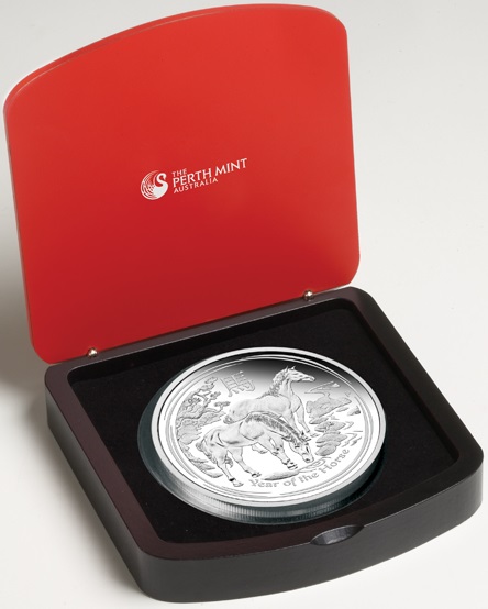 Produktinformationen "1 Kilogramm Silbermünze Australien Lunar II Pferd 2014 polierte Platte"