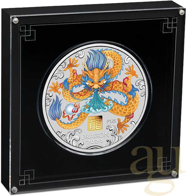 Produktinformationen "1 Kilogramm Silbermünze Australien Lunar III Drache 2024 - coloriert mit 1g Gold Privy Mark"