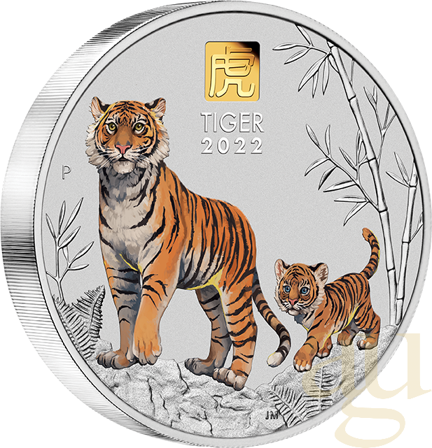 1 Kilogramm Silbermünze Australien Lunar III Tiger 2022 - coloriert mit 1g Gold Privy Mark