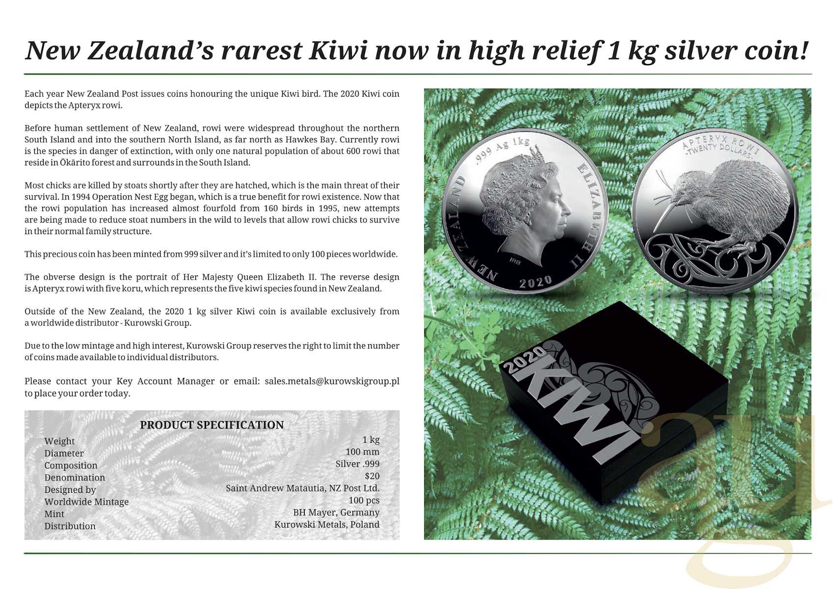 Produktinformationen "1 Kilogramm Silbermünze Neuseeland Kiwi 2020 - polierte Platte"