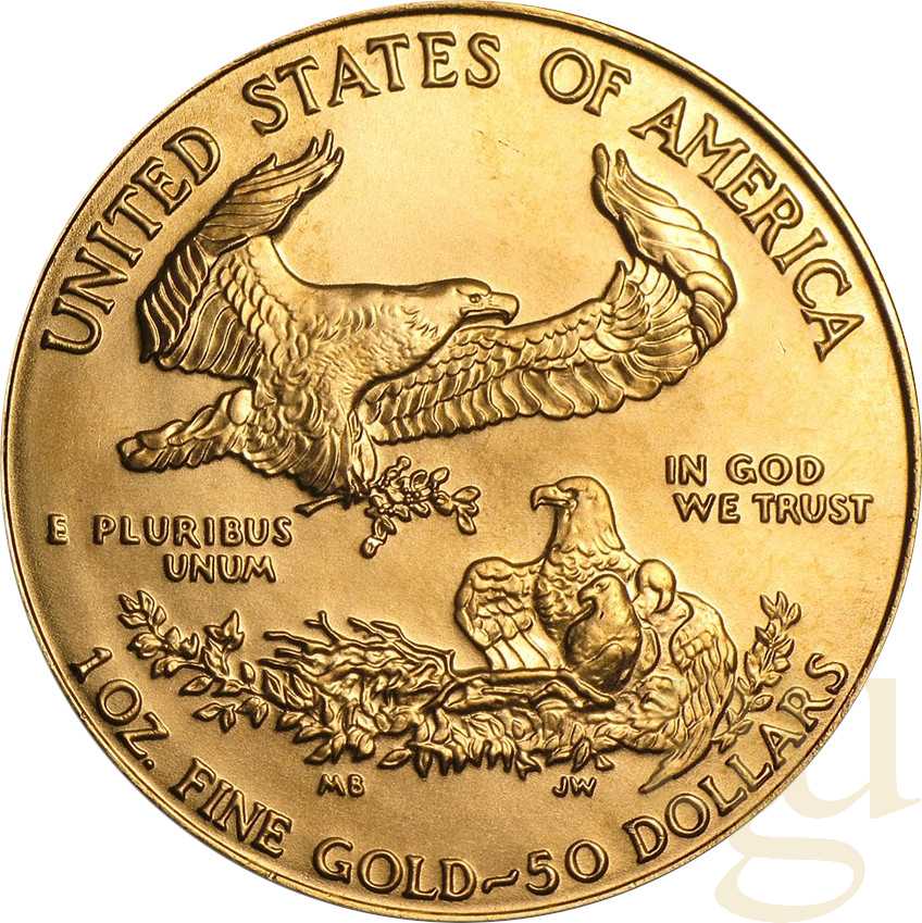 Die Gold American Eagle Münze zählt zu den bekanntersten Anlagemünzen und wurde von der U.S. Mint erstmals im Jahr 1986 ausgegeben. Die US-Mint ist die offizielle Prägeanstalt der Vereinigten Staaten von Amerika. Deshalb ist die American Eagle Goldmünze eine der offiziellen Bullion Coins der USA. Die Regierung der USA garantiert das ordnungsgemäße Gewicht, die Feinheit und den Goldgehalt der Münze. Die American Eagle der U.S. Mint weisen eine Feinheit von 916,67/1.000 Gold auf.