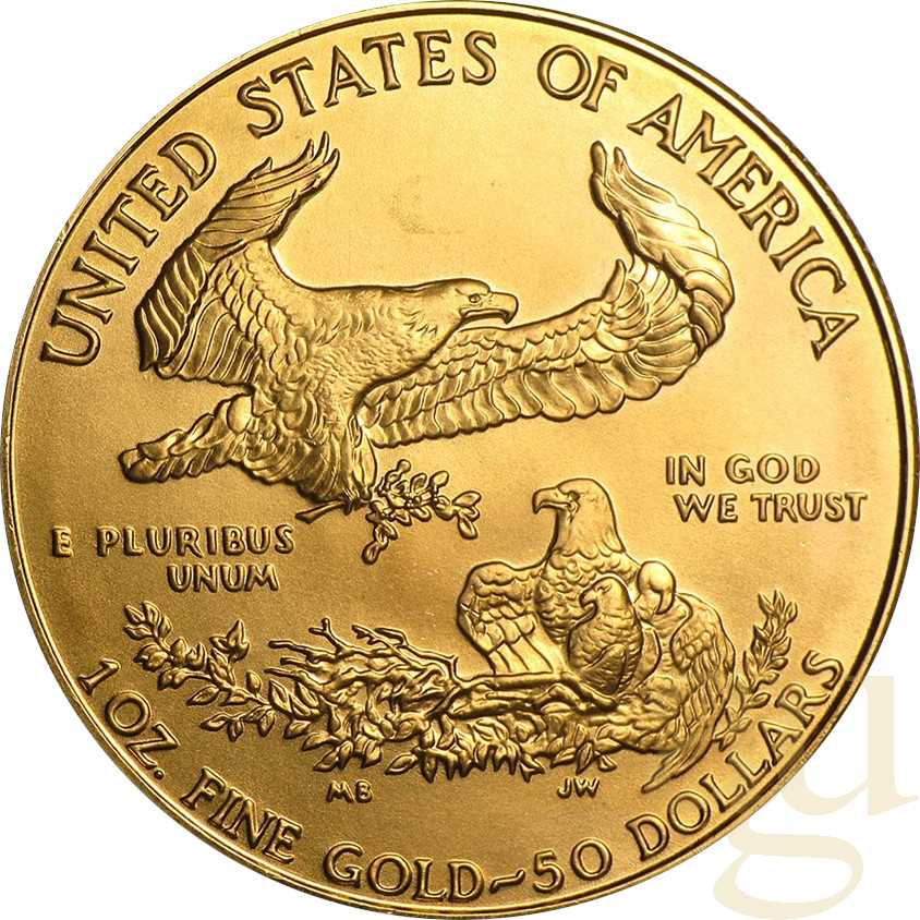 Die Gold American Eagle Münze zählt zu den bekanntersten Anlagemünzen und wurde von der U.S. Mint erstmals im Jahr 1986 ausgegeben. Die US-Mint ist die offizielle Prägeanstalt der Vereinigten Staaten von Amerika. Deshalb ist die American Eagle Goldmünze eine der offiziellen Bullion Coins der USA. Die Regierung der USA garantiert das ordnungsgemäße Gewicht, die Feinheit und den Goldgehalt der Münze. Die American Eagle der U.S. Mint weisen eine Feinheit von 916,67/1.000 Gold auf.