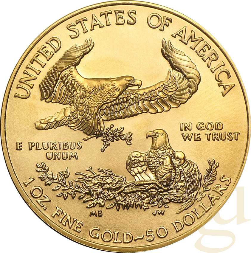 Die Gold American Eagle Münze zählt zu den bekanntersten Anlagemünzen und wurde von der U.S. Mint erstmals im Jahr 1986 ausgegeben. Die US-Mint ist die offizielle Prägeanstalt der Vereinigten Staaten von Amerika. Deshalb ist die American Eagle Goldmünze eine der offiziellen Bullion Coins der USA. Die Regierung der USA garantiert das ordnungsgemäße Gewicht, die Feinheit und den Goldgehalt der Münze. Die American Eagle der U.S. Mint weisen eine Feinheit von 916,67/1.000 Gold auf.