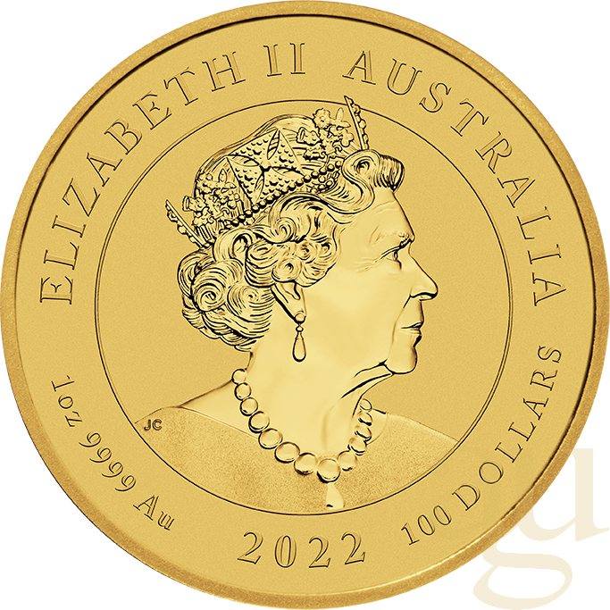 Jede Münze wird von der Perth Mint aus 1 oz 99,99 % reinem Gold geprägt und als gesetzliches Zahlungsmittel gemäß dem Australian Currency Act 1965 ausgegeben. Von der Dragon 2022 1oz Gold BU Coin werden nicht mehr als 5.000 Stück ausgegeben. Auf der Rückseite der Münze ist ein mächtiger chinesischer Drache abgebildet, der in einer seiner Klauen eine Perle umklammert. Die rote und goldene Färbung des Tieres wird mit Freude und Reichtum assoziiert. Neben dem Münzzeichen "P" der Perth Mint sind auf dem Münzbild auch Wolken abgebildet, die das himmlische Reich des Drachens symbolisieren. Auf der Vorderseite der Münze ist das Bildnis Ihrer Majestät Königin Elizabeth II. von Jody Clark abgebildet, zusammen mit dem Gewicht, dem Feingehalt, dem Nennwert und dem Jahr.