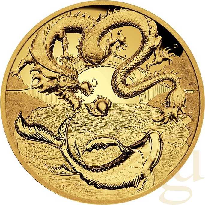 1 Unze Goldmünze Australien Drache & Koi 2023 - High Relief - polierte Platte