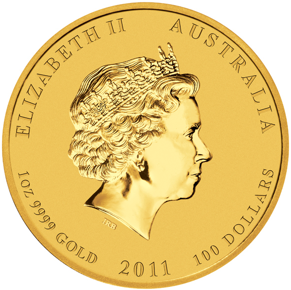 Die Australien Lunar II Serie in Gold wird seit 2008 von der Prägestätte „The Perth Mint“ mit jährlich wechselnden Motiven herausgegeben. Die Lunar II Serie ist der Nachfolger der erfolgreichen Lunar I Serie und orientiert sich an den 12 chinesischen Tierkreiszeichen des chinesischen Mondkalenders. Die Perth Mint gestaltete die Goldmünzen bei der zweiten Lunar Serie etwas größer, dafür aber flacher als bei der Vorgängerserie. Die Jahreszahl und das Münzgewicht befinden sich nicht mehr auf der Bildseite, sondern auf der Kopfseite unterhalb des Portraits von Queen Elisabeth II., nach dem Entwurf von Ian Rank-Broadley. Dessen Initialen „ IRB“ befinden sich am Halsende des Porträts. Darunter stehen die Angaben zu Prägejahr „ 2011“, zu Feingewicht „1OZ“ und Feinheit „9999“ sowie zum Metall „GOLD“. Zu dem ist auf der Münzvorderseite das Nominal in Australischen „100 DOLLARS“ abgebildet. Umrandet von dem Schriftzug „ELISABETH II“ und „AUSTRALIA“. Der Münzrand ist geriffelt. Auf der Motivseite ist das Bildnis des Tieres zu sehen, welches dem chinesischen Kalender zufolge an der Reihe ist. Die Motive auf der Rückseite werden von Keith Chan entworfen. Unterhalb des Motivs befindet sich die Inschrift "Year of the Rabbit", die durch jeweils das abgebildete Tier ergänzt wird.