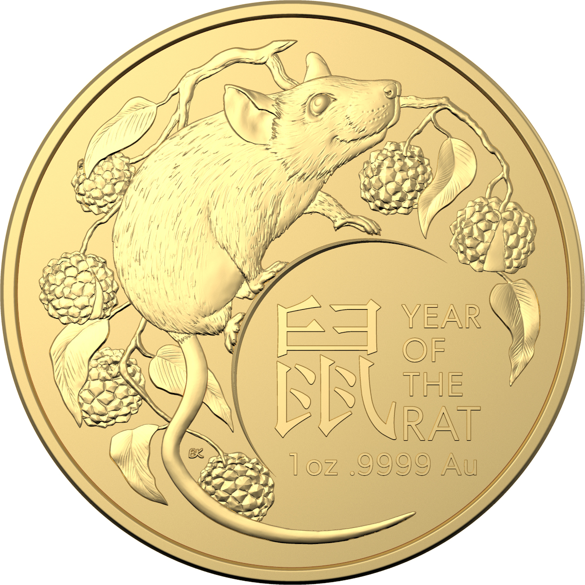 1 Unze Goldmünze Australien RAM Lunar Ratte 2020