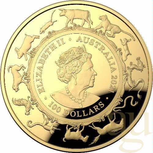 Produktinformationen "1 Unze Goldmünze Australien RAM Lunar Ochse 2021 - polierte Platte"