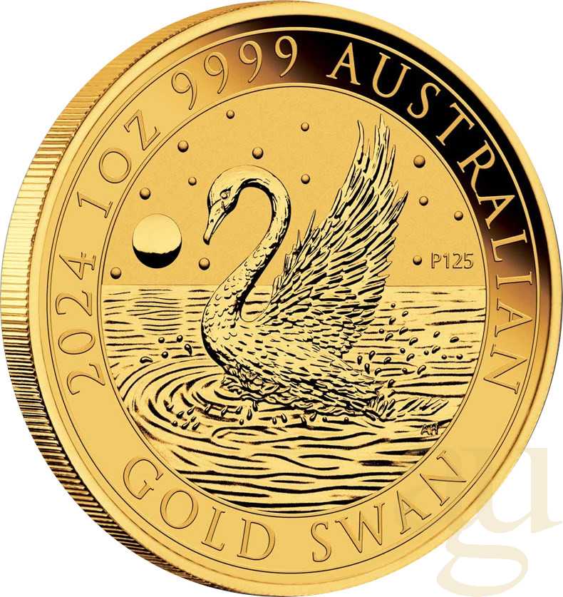 Der australische Schwan in Gold ist eine Münze, die sich dank ihrer jährlich wechselnden Motiven und der strengen Limitierung auf nur 5.000 Exemplare pro Jahrgang bei Sammlern großer Beliebtheit erfreut. Analog zu anderen australischen Prägungen wie dem Känguru zeichnet sich die Goldmünze durch einen Feingehalt von 999,9/1.000 aus. In der Umschrift befinden sich weiterhin die Angaben „THE 1 OZ 9999 AUSTRALIAN GOLD SWAN“ und das „P“ für Perth Mint. Auf der Wertseite ist das Motiv ihrer königlichen Hoheit Elisabeth II. abgebildet, es wurde zuletzt 2016 im gesamten Common-Wealth angepasst. In der Umschrift befinden sich die Angaben "AUSTRALIA, 2024, 100 DOLLARS“.