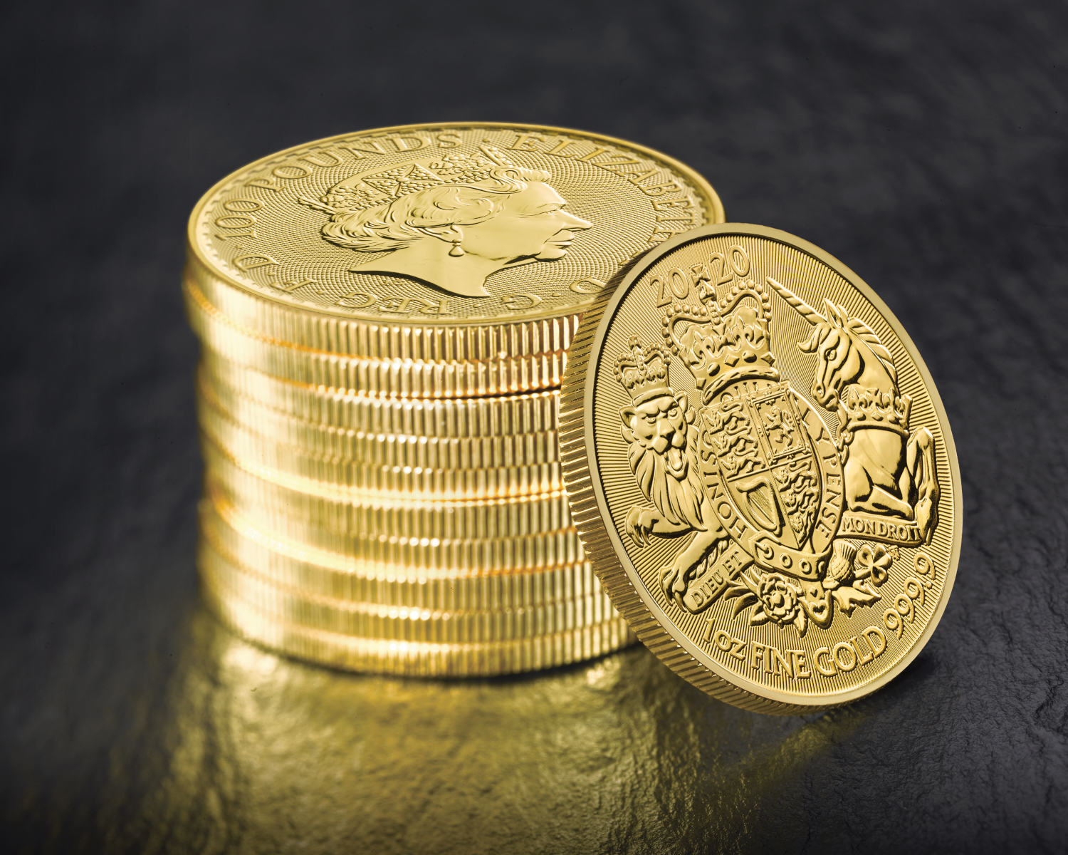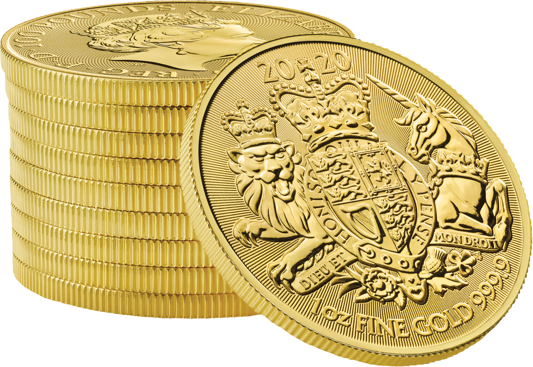 Die neuste Bullion Münze "Großbritannien Royal Arms 2020" der Royal Mint wird dem Wappen Großbritanniens gewidmet, welches auch im Vordergrund der Münze steht. Es wurde von Eric Sewell entworfen und lässt sich in vier Bereiche unterteilen. Jeder Bereich repräsentiert dabei einen Teil des Königreichs. Im ersten und vierten Quadranten befinden sich jeweils die drei Löwen, die für England stehen. Im zweiten Quadranten ist das Scottische Wappenlogo zu sehen, ein einzelner Löwe. Der dritte Quadrant beinhaltet als Symbol für Irland, eine Harfe. Auf der Werteseite befindet sich, wie bei vielen anderen gängigen Münzen, die britische Königin Queen Elizabeth II. Die Goldmünze weißt einen Feingehalt von 999.9/1000 auf.