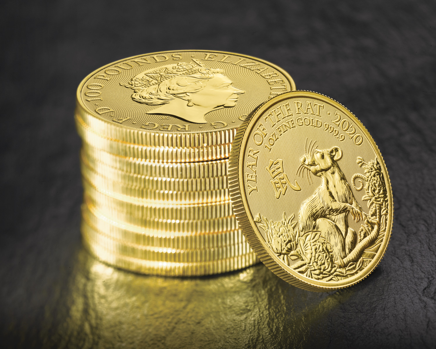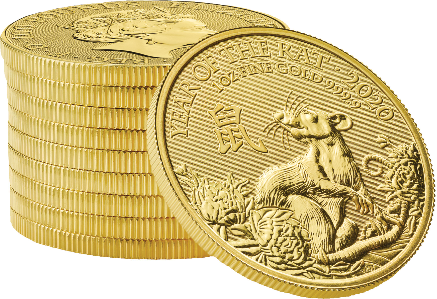 Seit 2014 gibt die britische Royal Mint die Lunar Serie aus. Die Serie beinhaltet insgesamt zwölf jährlich wechselnde Tiermotive des chinesischen Mondkalenders. Mit einer Auflage von 8.888 Stück ist die Münze Year of the Rat die siebte von zwölf Tiermotiven. Die Rückseite der Goldmünze ziert Königin Elizabeth II. mit einem Nennwert von 100 Pounds, wodurch die Münze als offizielles Zahlungsmittel in Großbritannien gilt.