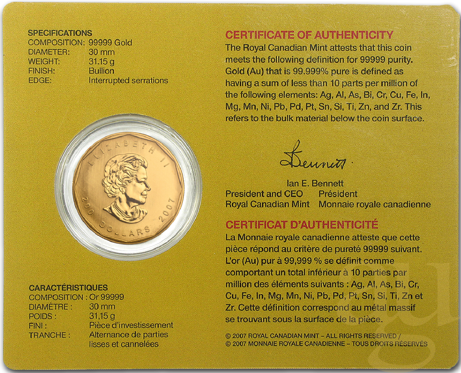 Die Royal Canadian Mint prägt seit 1979 die bekannte und beliebte Maple Leaf Goldmünze. Maple Leaf engl. heißt übersetzt Ahornblatt, dieses ist auf der Rückseite der Münze zu finden. Auf der Werteseite befindet sich, wie bei vielen anderen gängigen Münzen, die britische Königin Queen Elizabeth II. Seit 2013 ist auf der Motivseite zusätzlich unten rechts eine kleine Laser-Gravur mit der zweistelligen Zahl als Sicherheitsmerkmal aufgebracht. Es handelt sich hier um eine Feingoldmünze mindestens 99.9% zur Kapitanlage mit einem geringen Aufgeld auf den reinen Edelmetallwert. Der Rand ist geriffelt, das erschwert zusätzlich Fälschungen. Die Gold Maple Leaf ist in den Größen 1g, 1/20oz, 1/10oz, 1/4oz, 1/2oz und 1oz erhältlich. Gelegentlich werden von der RCM Sonderausgaben wie Mounted Police oder andere Tiermotive ausgegeben. Neben der Goldausgabe gibt es die erfolgreiche Bullionmünze auch in Silber als 1 Unze.