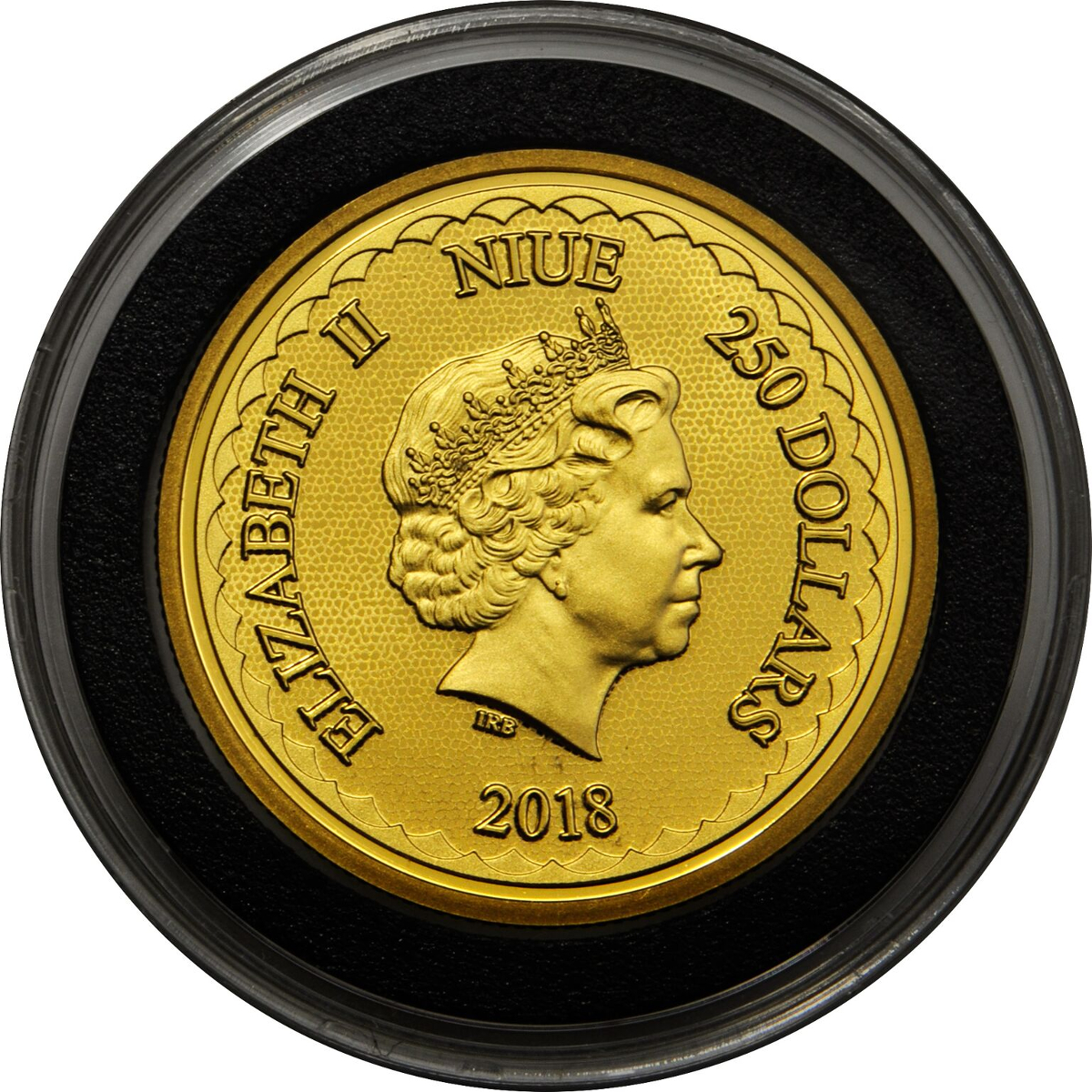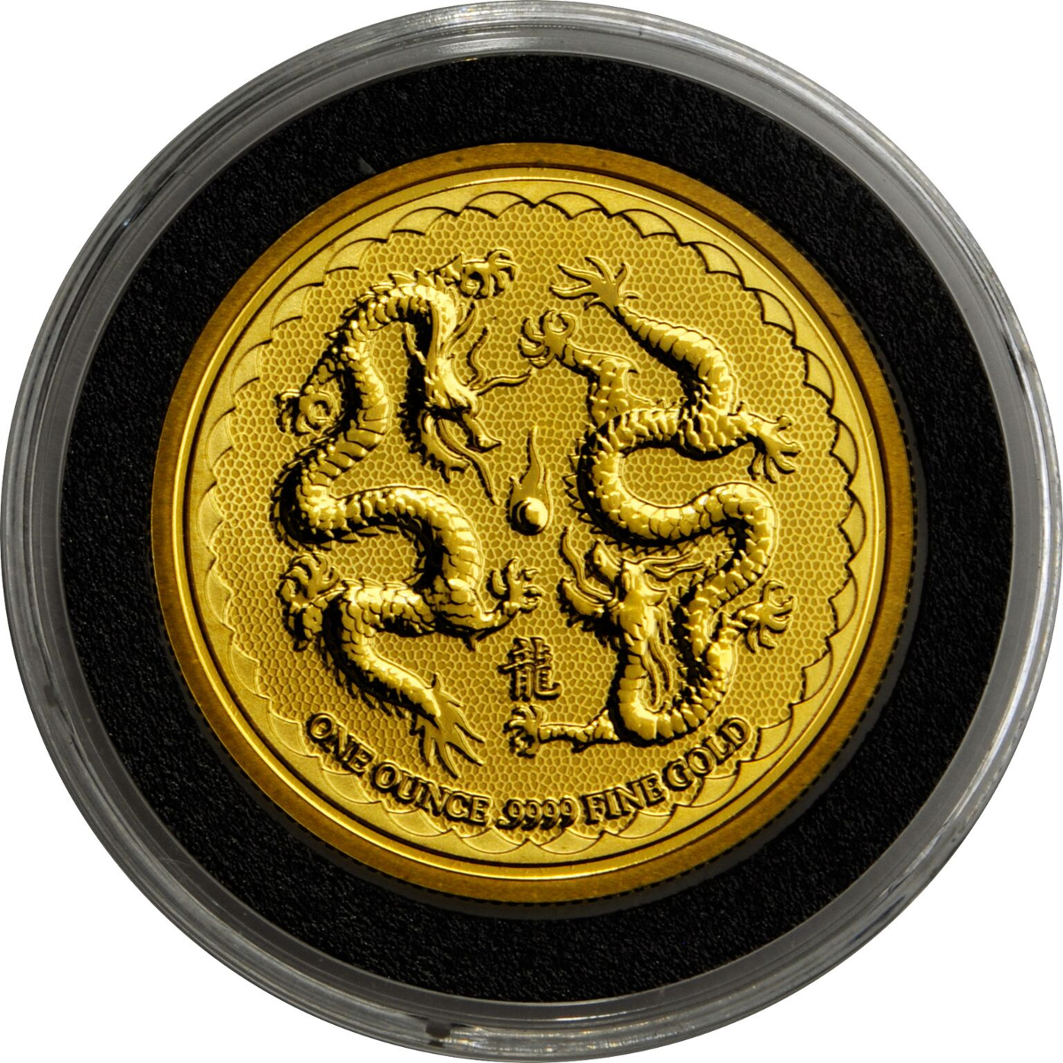 Der Double Dragon, gilt als gesetzliches Zahlungsmittel (Legal Tender). Die Münze wurde von der neuseeländischen Münzprägeanstalt in der Einheit von einer Unze geprägt. Der Goldfeingehalt beträgt .9999. Die Goldmünze kennzeichnen zwei majestätische Drachen, die die flammende Perle jagen. Der Drache ist das Symbol für Kraft, Stärke und Glück. Die Perle steht für spirituelle Energie, Weisheit, Wohlstand und Unsterblichkeit. Auf der Rückseite der Münze ist das Gewicht von einer Unze und der Goldfeingehalt von 0,9999 aufgeprägt. Auf der Münze befindet sich das Bildnis des Ian Rank-Broadley, Ihrer Majestät Königin Elizabeth II, die Bezeichnung von 250 Dollar und das Jahr 2018.