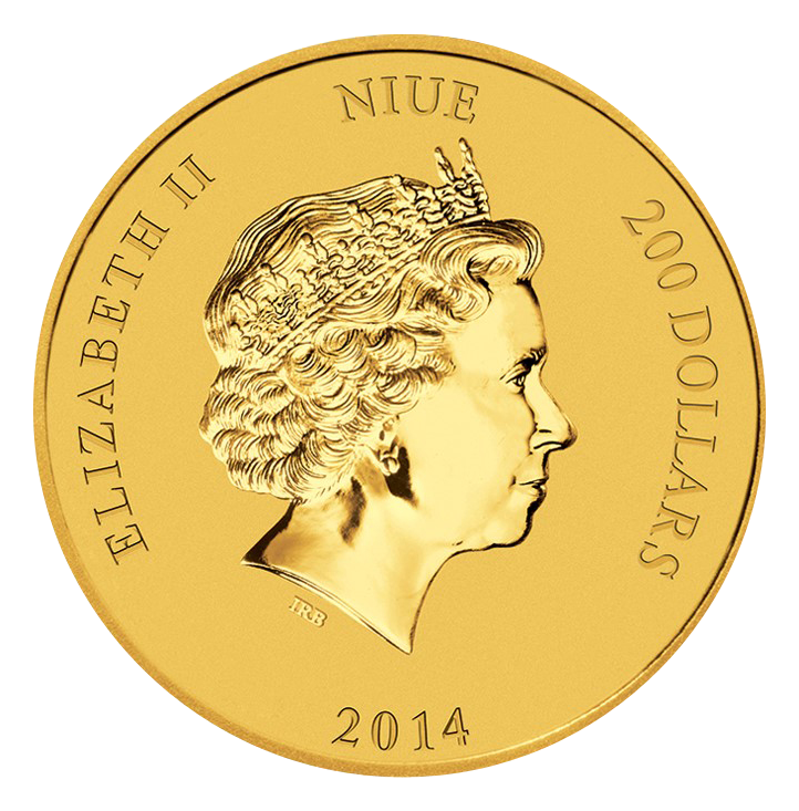 Die 1 Unze Gold Schildkröte aus Neuseeland mit dem Prägejahrgang 2014 wird von der New Zealand Mint unter höchsten Qualitätsstandards als Anlagemünze und als Sammlermünze mit einem Nennwert von 200$ ausgegeben. Seit über 40 Jahren produziert die New Zealand Mint, Münzen, Barren und Medaillen. Hauptsitz der Prägestätte ist Auckland. Die "Fiji Taku"-Goldmünze, dessen Name sich dem Ausgabeland, den Fidschi Inseln und der einheimischen Bezeichnung für Schildkröte "Taku“ zusammensetzt, war 2013 die erste Bullionmünze mit einem solchen Tiermotiv. Im Jahr 2014 erschien, parallel zur Version in Silber, das identische Motiv der Meeresschildkröte auf einer Münze, die der Inselstaat „Niue“ ausgegeben hat. Zeitgleich änderte sich der Münzname in "Niue Turtle" oder nur "Turtle". Die Motivseite zeigt eine schwimmende "Karettschildkröte" (Eretmochelys imbricata), umgeben von Luftblasen, die zu den Meeresschildkröten gehört und bis zu 75 kg schwer und eine Größe von 9o cm erreichen kann. Sie steht auf der Liste bedrohter Tierarten des Washingtoner Artenschutzabkommens. Weiterhin ist am linken Münzrand der Schriftzug „TURTLE“ eingeprägt. Unterhalb der Schildkröte sehen wir die Prägung „1oz 999,9 FINE GOLD“. Der Rand ist geriffelt. Auf der Wertseite ist das Staatsoberhaupt der Commonwealth of Nations, die britische Königin Elisabeth II. zu sehen. Hintergrund ist, das Niue seit 1974 durch einen Assoziierungsvertrag mit Neuseeland verbunden ist. Savage Island, wie Niue früher hieß, ist eine der größten gehobenen Atolle der Welt und 261,46 km² groß. Die Koralleninsel liegt im Südpazifik in der Nähe von Tonga, westlich der Cookinseln und südlich von Samoa. Das aktuelle Bildnis der Queen entwarf der Designer Ian Rank-Broadley, zu erkennen an den Initialen "IRS" unterhalb des Bildnisses. Der Nominalwert der Währung ist erstmals nicht als Wort, sondern als Zahl aufgeprägt. Die "200 DOLLARS" beziehen sich auf den Neuseeland Dollar. In der Rundschrift sind das Prägejahr „2014“ das Ausgabeland „Niue“ und der Name ihrer Majestät zu sehen. Die Turtle-Goldmünze wird nur in der 1-Unzen-Größe geprägt.