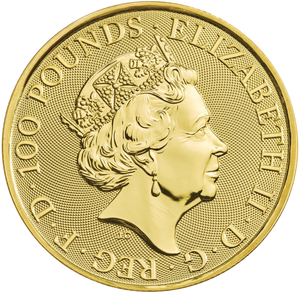 Seit dem Jahr 2016 wird die „The Queen´s Beasts“ Serie von der britischen Royal Mint ausgegeben. Die Serie beinhaltet zehn verschiedene Wappenmotive, die Rückseite wird von Königin Elizabeth ll geziert. Mit einem Nennwert von 100 Pounds gelten die Münzen als anerkanntes Zahlungsmittel in Großbritannien. Die Serie symbolisiert zehn imposante Tierstatuen, welche bei der Krönung von Königin Elizabeth II. im Jahre 1953 den Eingang von Westminster Abbey zierten.
