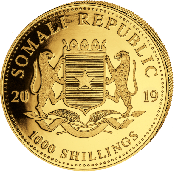 Namensgebend für die Münze ist der afrikanische Elefant, der auf der Vorderseite der Münze abgebildet ist. Das Motiv wechselt jedes Jahr, wodurch der Somalia Elefant zu einer beliebten Anlage- und Sammlermünze geworden ist. Auf der Rückseite sieht man das Staatswappen der Somalischen Republik, das Prägejahr, sowie den Nennwert der Münze. Die Anlagemünzen sind allgemein anerkannt, einfach zu kaufen, zu verkaufen, zu transportieren und zu lagern. Ältere Jahrgänge sind meist gegen einen erhöhten Aufschlag zu erwerben. Damit ist der Somalia Elefant die ideale Ergänzung für Ihre Kapitalanlage.