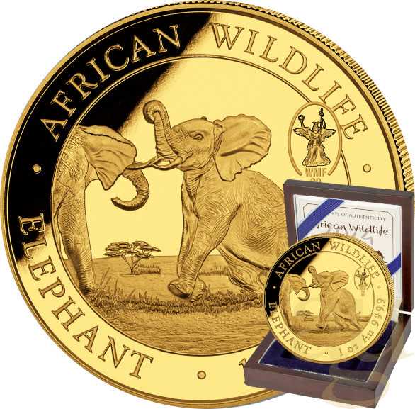 Seit 2004 wird die Anlagemünze African Wildlife Somalia Elefant beim Bayrischen Münzamt in Deutschland geprägt. Die Goldmünze hat eine Feinheit von 999.9/1000 und wird in der Währung Somalische Shilling ausgegeben. Der Somalia Elefant ist ein gesetzlich zugelassenes Zahlungsmittel in der Republik Somalia.