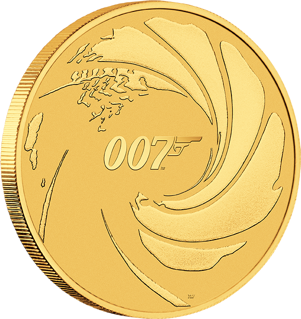 Die Goldmünze ist dem Geheimagenten mit der "Lizenz zum Töten" gewidmet - James Bond, auch bekannt als 007. Die Feinheit der Goldmünze beträgt 999/1000. Das Motiv zeigt das typische Bond Waffenlogo welches von einem stilisierten Waffenrohr umrandet ist. Die Rückseite der Münze zeigt das Portrait von Königin Elizabeth II., sowie den Nennwert, die Feinheit und das Ausgabejahr.