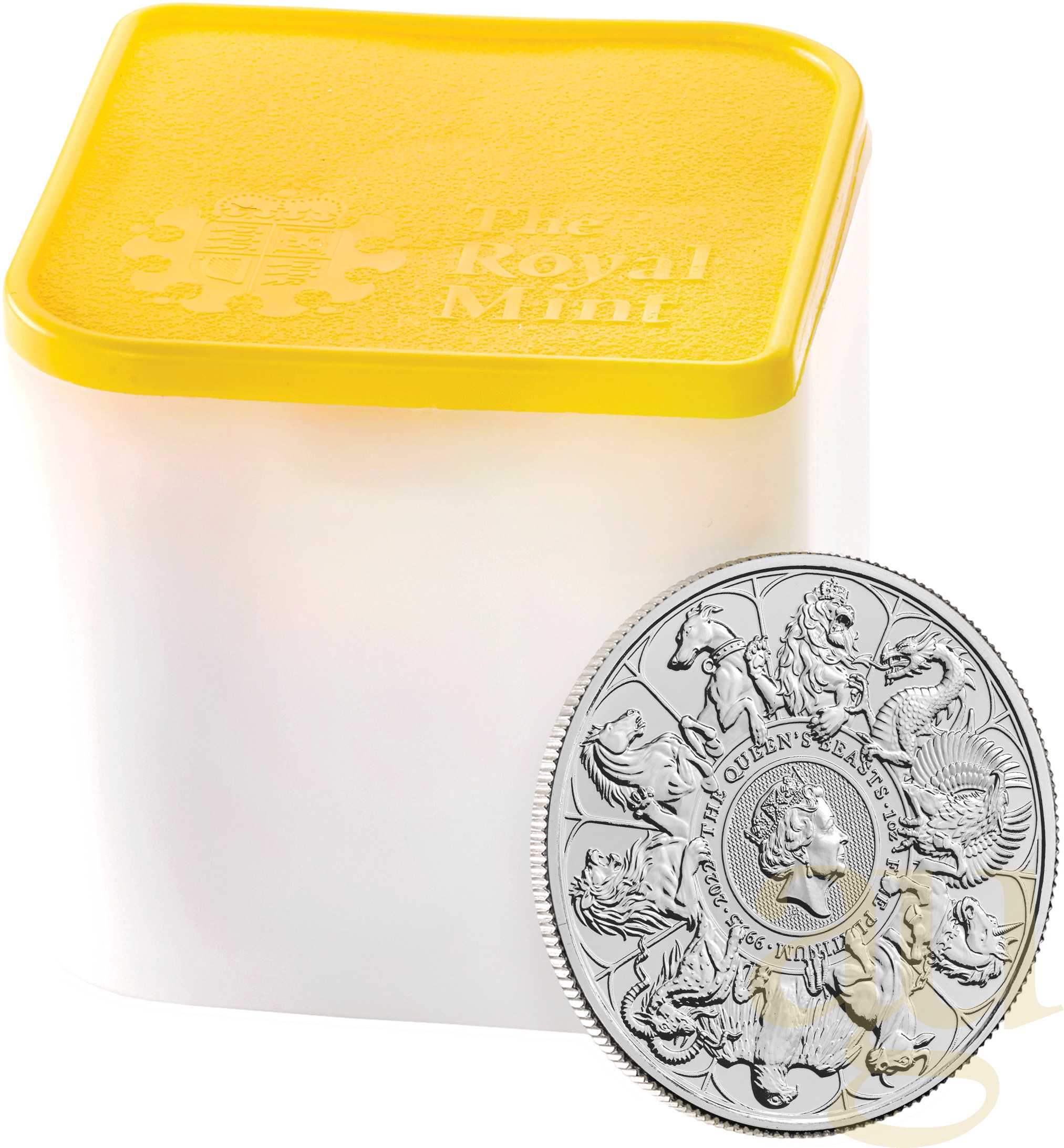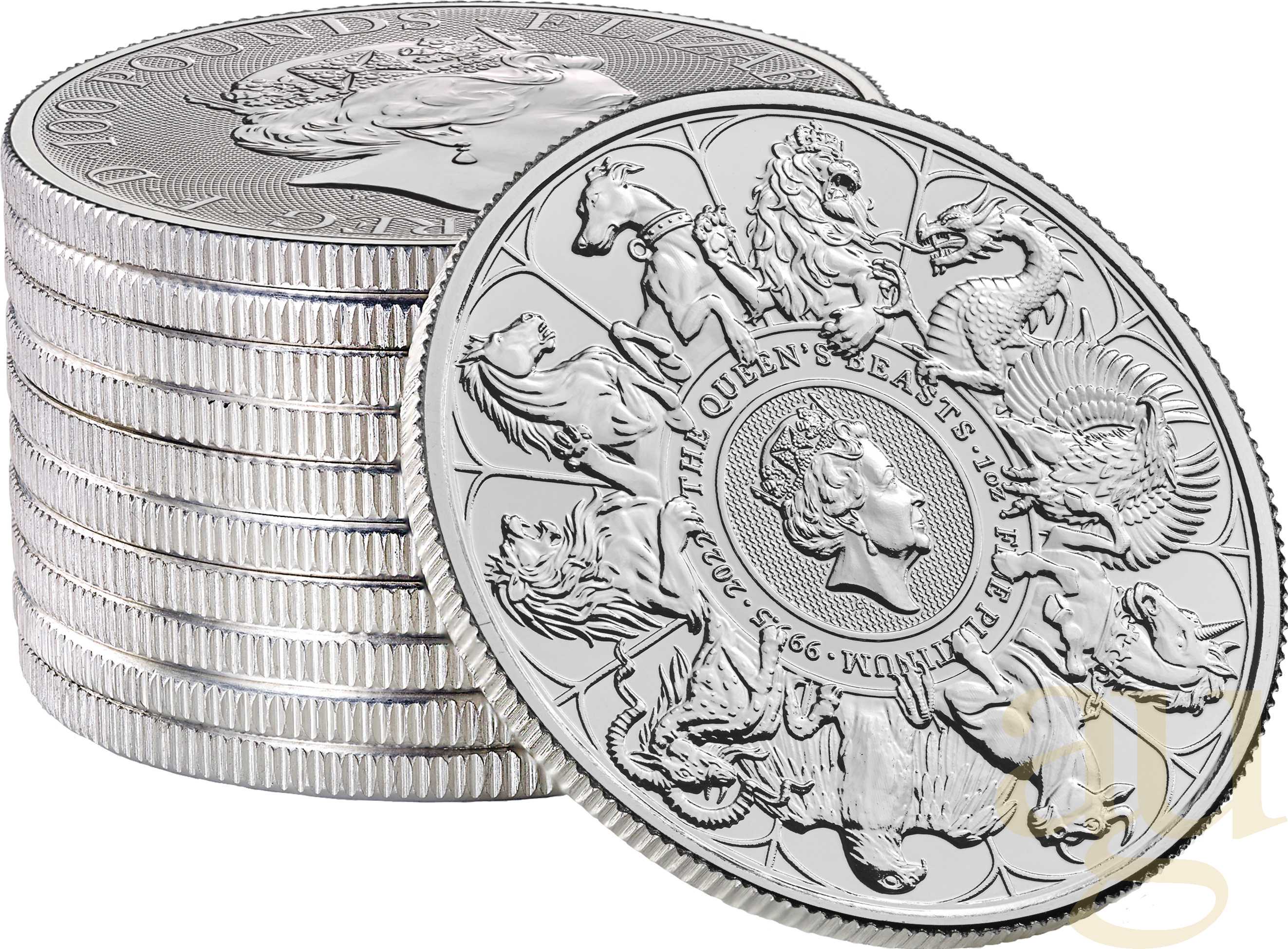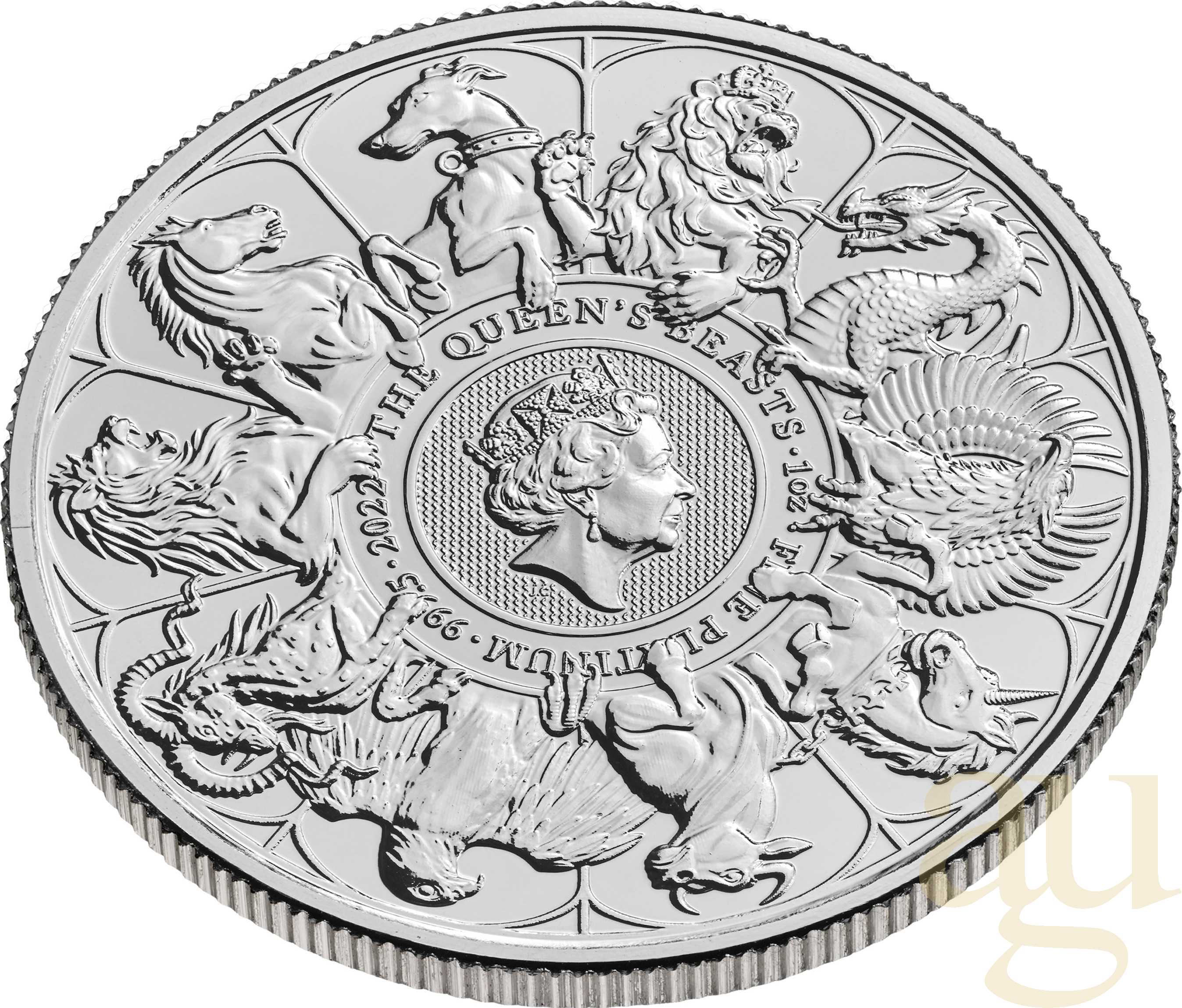 Seit dem Jahr 2017 wird die „The Queens Beasts Platin“ Serie von der britischen Royal Mint ausgegeben. Insgesamt beinhaltet die Serie zehn verschiedene Wappenmotive, die Rückseite der Münze ziert Königin Elisabeth ll. Mit einem Nennwert von 100 Pounds gelten die Münzen offiziell als Zahlungsmittel. Die Silbermünze Completer Coin 2022 ist die letzte von elf königlichen Münzmotiven. Die Serie symbolisiert zehn imposante Tierstatuen, welche bei der Krönung von Königin Elizabeth II. im Jahre 1953 den Eingang von Westminster Abbey zierten.