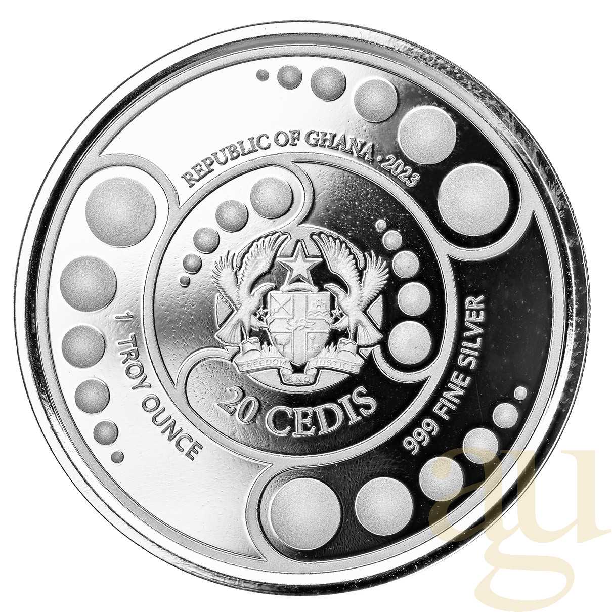 1 Unze Silbermünze Afrika Ghana Alien 2023 - Coloriert