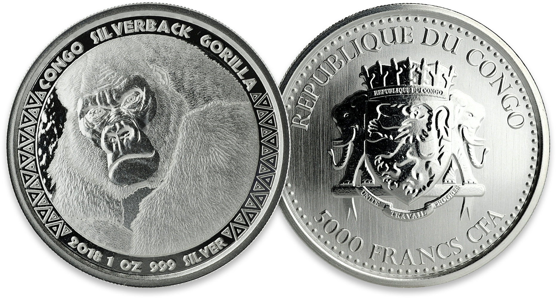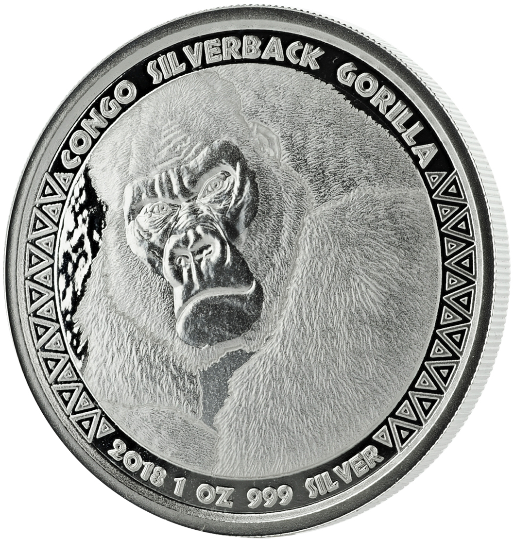 Seit 2015 wird die Silbermünze „Congo Silverback Gorilla“ von der Scotdale Mint aus den USA ausgegeben. Als Motiv ist ein reifer männlicher ausgewachsener Berggorilla zu sehen. Oberhalb des Motivs steht CONGO SILVERBACK GORILLA, darunter die Stückelung 1 oz, der Jahrgang und die Feinheit 999. Der Rand um das Motiv herum ist mit einem gleichbleibenden Ethno-Design gestaltet. Auf der Wertseite der Kongo Gorilla Silbermünze ist der Schriftzug "REPUBLIQUE DU CONGO", der Nennwert "5000 FRANCS CFA" (Kongo-Francs) und das Wappen der Republik Kongo zu sehen.