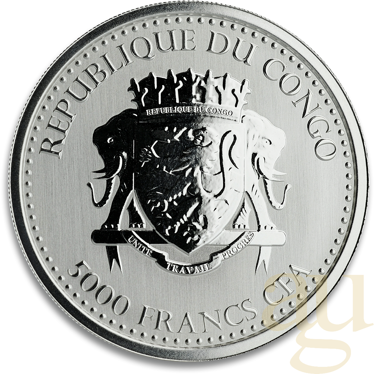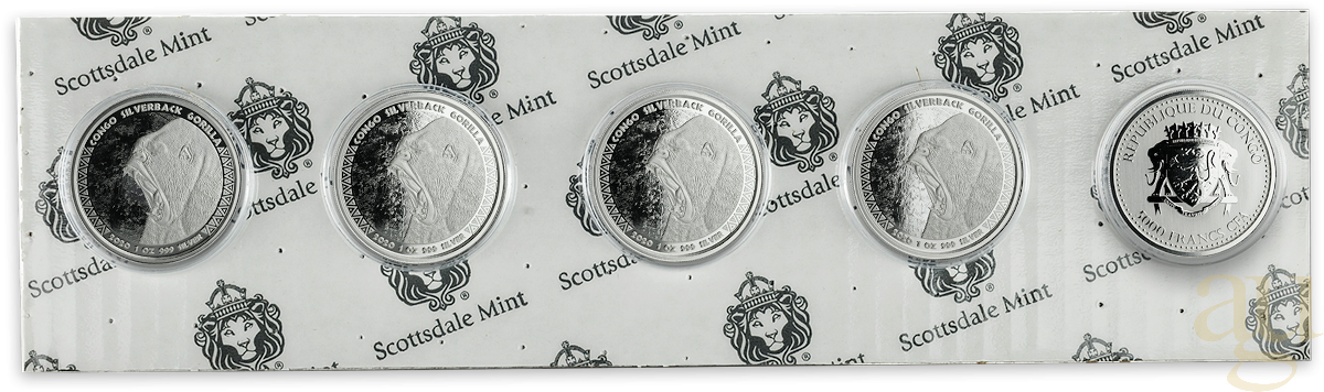 Seit 2015 wird die Silbermünze „Congo Silverback Gorilla“ von der Scotdale Mint aus den USA ausgegeben. Als Motiv ist ein reifer männlicher ausgewachsener Berggorilla zu sehen. Oberhalb des Motivs steht CONGO SILVERBACK GORILLA, darunter die Stückelung 1 oz, der Jahrgang und die Feinheit 999. Der Rand um das Motiv herum ist mit einem gleichbleibenden Ethno-Design gestaltet. Auf der Wertseite der Kongo Gorilla Silbermünze ist der Schriftzug "REPUBLIQUE DU CONGO", der Nennwert "5000 FRANCS CFA" (Kongo-Francs) und das Wappen der Republik Kongo zu sehen.