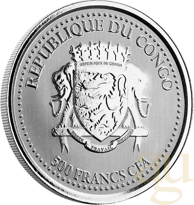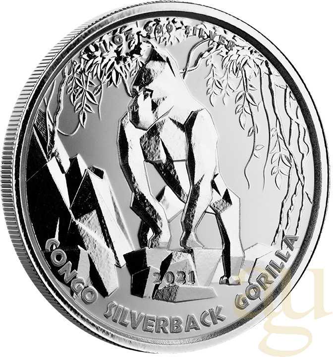 Seit 2015 wird die Silbermünze „Congo Silverback Gorilla“ von der Scotdale Mint aus den USA ausgegeben. Als Motiv ist ein reifer männlicher ausgewachsener Berggorilla zu sehen. Oberhalb des Motivs steht CONGO SILVERBACK GORILLA, darunter die Stückelung 1 oz, der Jahrgang und die Feinheit 999. Der Rand um das Motiv herum ist mit einem gleichbleibenden Ethno-Design gestaltet. Auf der Wertseite der Kongo Gorilla Silbermünze ist der Schriftzug "REPUBLIQUE DU CONGO", der Nennwert "5000 FRANCS CFA" (Kongo-Francs) und das Wappen der Republik Kongo zu sehen.