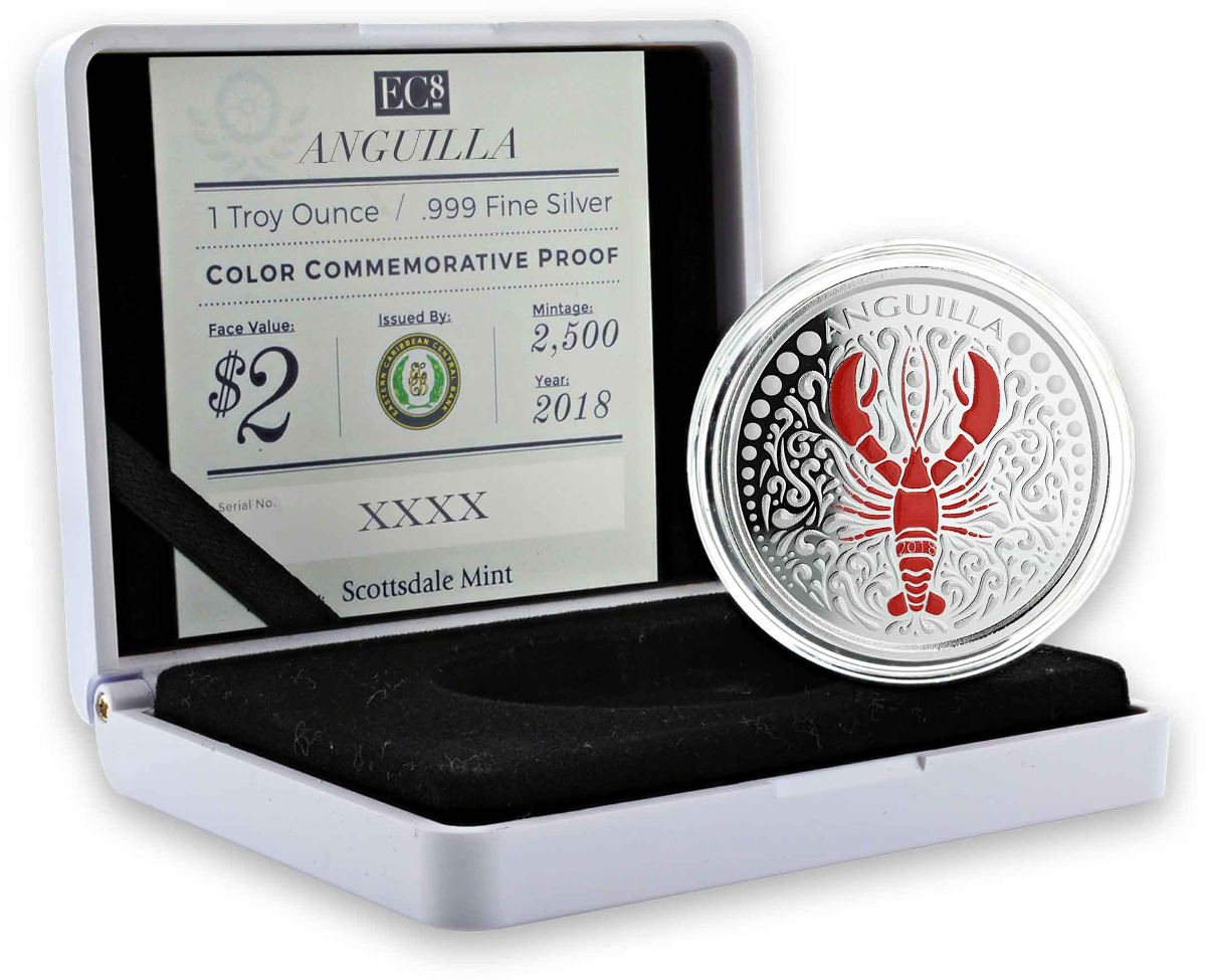 Produktinformationen "1 Unze Silbermünze EC8 Anguilla - Lobster 2018 - coloriert"