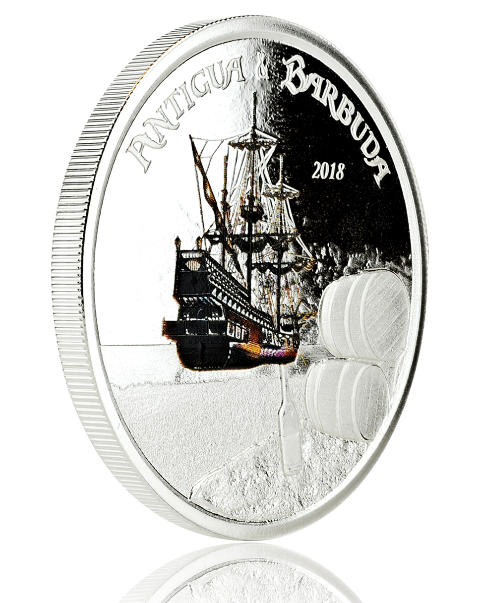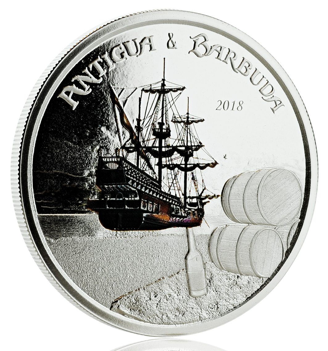 1 Unze Silbermünze EC8 Antigua & Barbuda - Rum Runner 2018 - coloriert