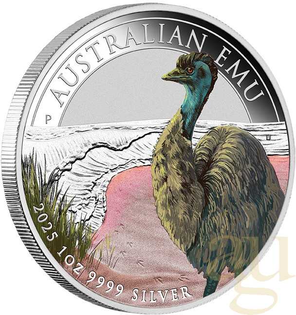 1 Unze Silbermünze Australien Emu 2025 - coloriert