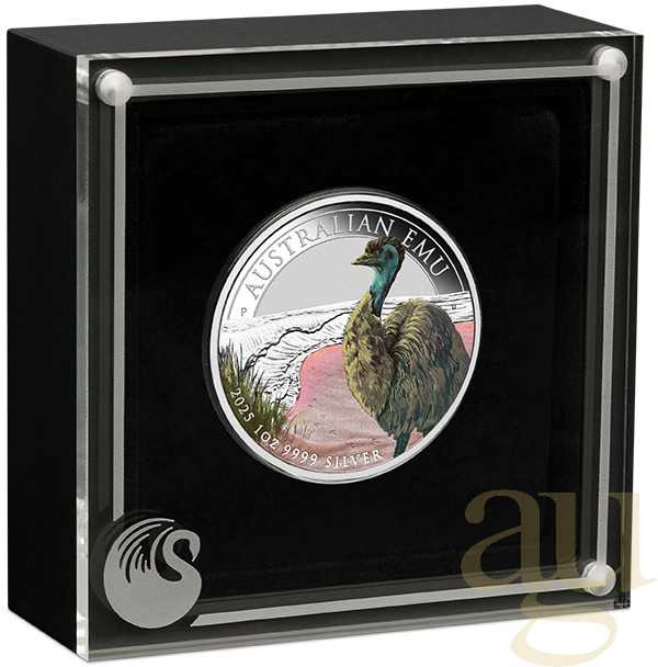 Seit 2018 wird die Emu Silbermünze von der Perth Mint Australien geprägt und in geringer Auflage ausgegeben. Die Serie mit jährlich wechselndem Motiv des australischen Laufvogels trägt die offizielle Bezeichnung "AUSTRALIAN EMU". Nach dem Strauß ist der Emu der zweitgrößte Laufvogel der Welt. Der australische Emu ist ein großer flugunfähiger Vogel, der große Distanzen überwinden kann. Obwohl Emus Federn haben, können sie nicht fliegen, weil ihre Flügel zu klein sind. Emus kommen in Australien in fast allen Lebensräumen vor und ernährt sich hauptsächlich von Grasblüten, Samen und Insekten. Der Emu ist der zweitgrößte lebende Vogel in der Höhe, nach dem Strauß.
