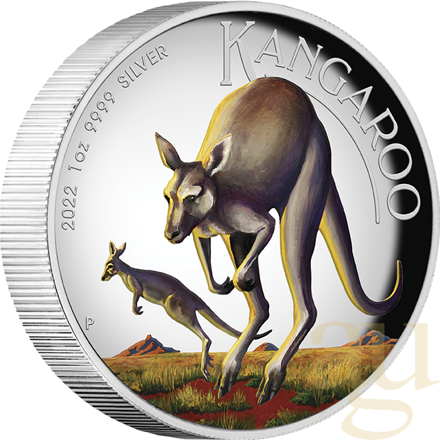 Produktinformationen "1 Unze Silbermünze Australien Känguru 2022 - polierte Platte - High Relief - coloriert"