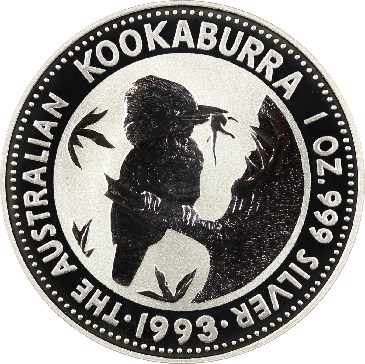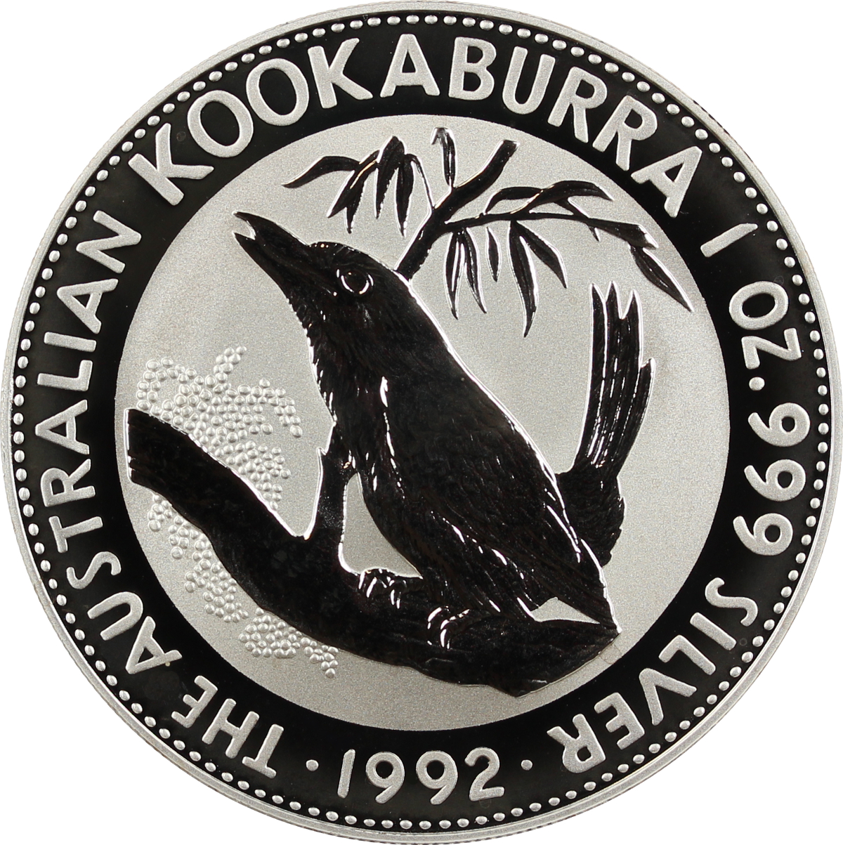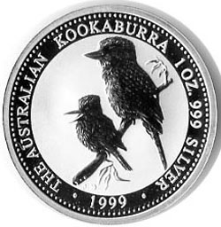 Die australische Prägestätte Perth Mint stellte die 1 Unzen Silberanlagemünze mit Motiv Kookaburra Eisvogel erstmalig im Jahr 1990 her. Der Nennwert betrug 5 A$, ab dem Jahr 1992 wurde dieser auf einen australischen Dollar herabgesetzt.