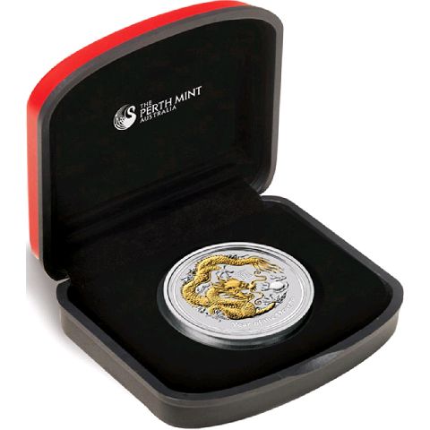 Produktinformationen "1 Unze Silbermünze Australien Lunar II Drache 2012 teilvergoldet + Box + Zertifikat"