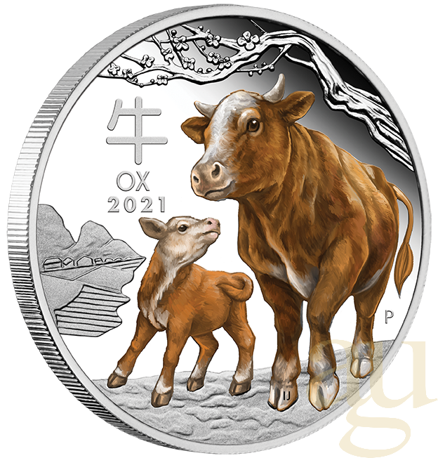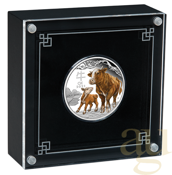 1 Unze Silbermünze Australien Lunar III Ochse 2021 - polierte platte - coloriert