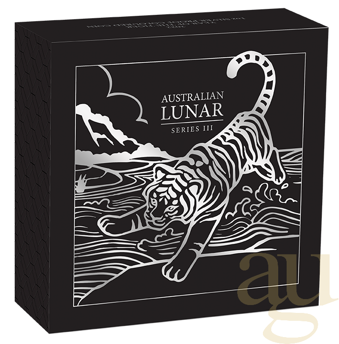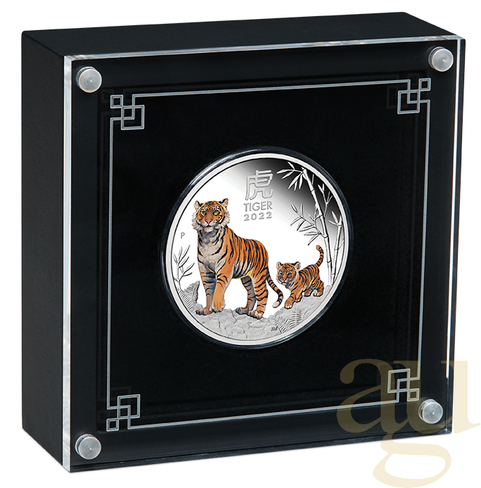 Produktinformationen "1 Unze Silbermünze Australien Lunar III Tiger 2022 - polierte platte - coloriert"