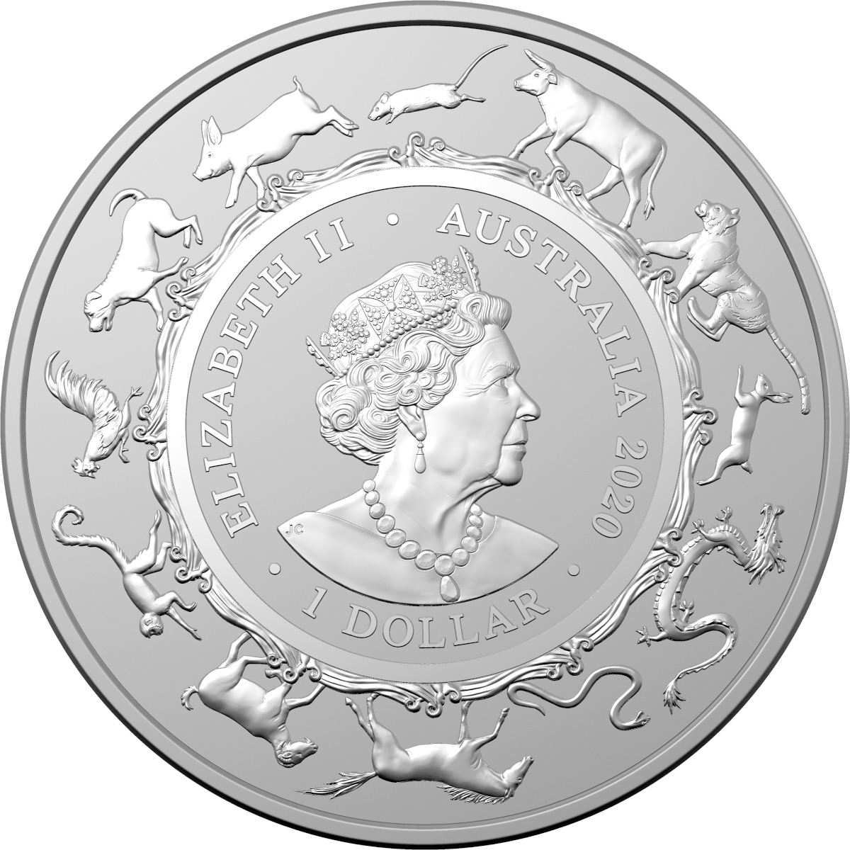 Diese Silbermünze ist dem Jahr der Ratte (2020) im chinesischen Mondkalender gewidmet. Auf der Motivseite ist eine Ratte abgebildet, die von einem glücksbringendem Litschi-Baum umgeben ist. Außerdem findet sich darauf das chinesische Schriftzeichen für Ratte / Maus, der Schriftzug "YEAR OF THE RAT", das Gewicht von "1 oz" und die Legierung ".999 Ag". Die Wertseite zeigt das berühmte Portrait von Königin Elizabeth II, welches von den 12 Tierkreiszeichen umgeben ist.