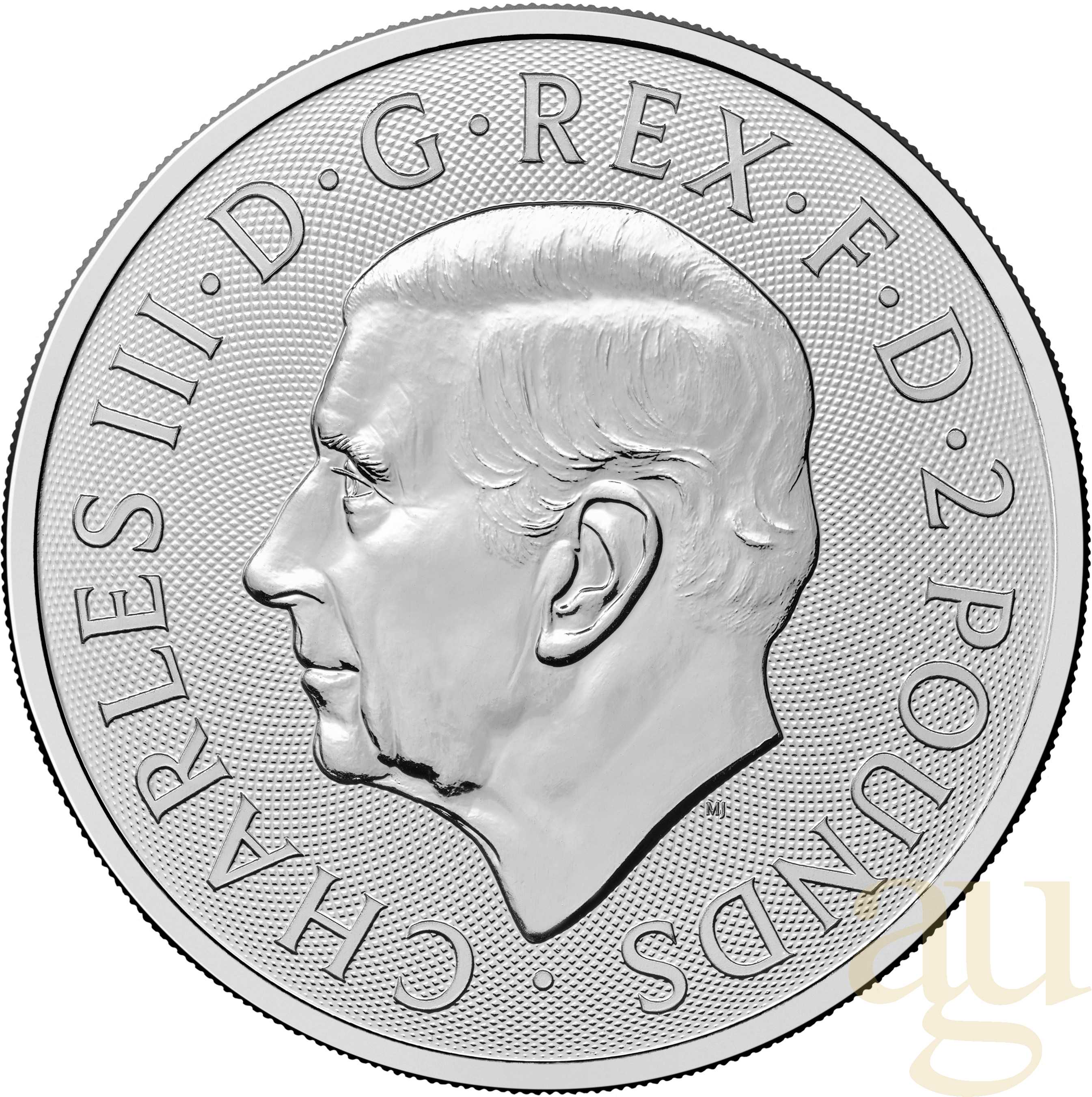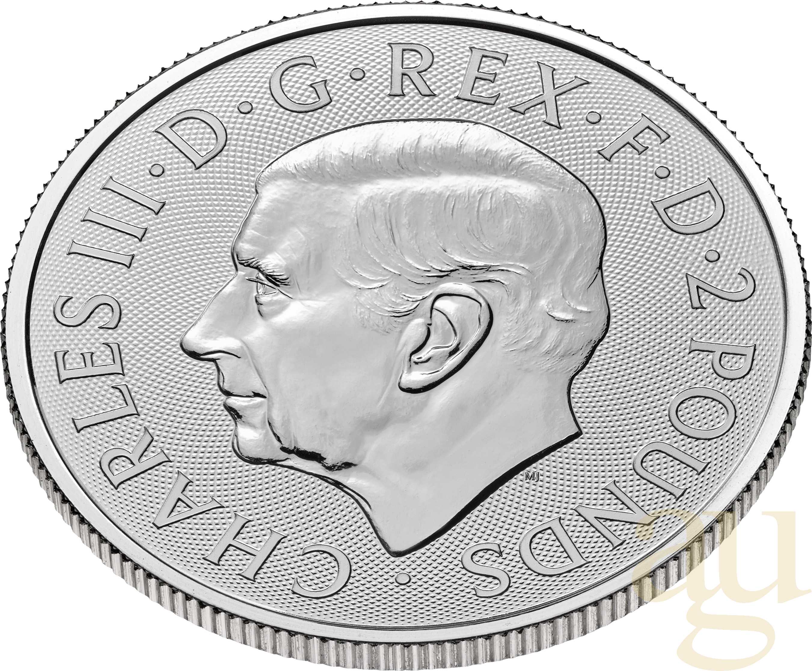 1 Unze Silbermünze Britannia 2000 Erstmals geprägt im Jahr 1997 von der British Royal Mint ist die Britannia die erste europäische Silber- Anlagemünze, mit einer Feinheit von 958/1000 (Legierung mit Kupfer zur Erhöhung der Kratzfestigkeit, auch Sterlingsilber genannt) nimmt sie eine Ausnahmestellung bei den Silbermünzen zur Kapitalanlage ein. Die 1 Unzen Silbermünze wurde in Jahren mit gerader Endzahl (1998, 2000, 2002, 2004 usw.) mit dem Motiv "Britannia mit Schild" geprägt. In den ungeraden Jahren wurde ein neues Britanniamotiv aufgelegt (die Motive von 1997 und 1999 waren jedoch einheitlich). Das häufigste gewählte Motiv ist die "Standing Britannia" nach einem Entwurf von Philip Nathan. Auf der Vorderseite der Münze ist zudem der Schriftzug "One Ounce Fine Silver Britannia" und das Prägejahr verzeichnet. Am unteren Münzrand sind zudem die britischen Inseln leicht zu sehen. Das Porträt der der Königin Elizabeth II wurde bereits 1998 angepasst, seither haben somit alle Ausgaben bis auf die Erstauflage 1997 das gleiche Bildnis der Queen. Neben dem Porträt der Königin findet man auf der Münzrückseite den Nominalwert (variiert zwischen 20 Pence und 2 Pfund) und den Schriftzug "Elizabeth II D G Reg Fid Def". In England ist die Anlagemünze gesetzliches Zahlungsmittel. Der Materialwert des Feinsilber Anteils übersteigt, wie bei allen Bullionmünzen, den Nennwert der Prägung um ein vielfaches. Der Rand ist, analog aller britischen Münzen, gekerbt und wird ohne Inschrift geprägt. Aufgrund des stark angestiegenen Silberpreises bietet die British Royal Mint seit 2011 die Britannia-Münze auch als ½ Unze Silber an. Hier beträgt die Erstauflage 50.000 Stück. Seit 1987 werden die Münzen auch in in den Einheiten 1/10 Unze, ¼ Unze, ½ Unze und 1 Unze in Gold verkauft.