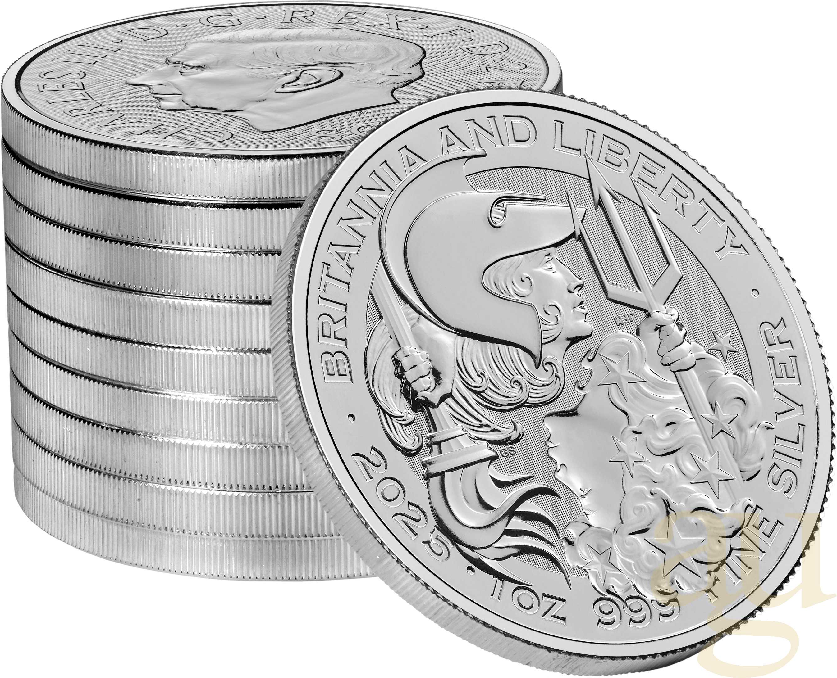 1 Unze Silbermünze Britannia 2009 Erstmals geprägt im Jahr 1997 von der British Royal Mint ist die Britannia die erste europäische Silber- Anlagemünze, mit einer Feinheit von 958/1000 (Legierung mit Kupfer zur Erhöhung der Kratzfestigkeit, auch Sterlingsilber genannt) nimmt sie eine Ausnahmestellung bei den Silbermünzen zur Kapitalanlage ein. Die 1 Unzen Silbermünze wurde in Jahren mit gerader Endzahl (1998, 2000, 2002, 2004 usw.) mit dem Motiv "Britannia mit Schild" geprägt. In den ungeraden Jahren wurde ein neues Britanniamotiv aufgelegt (die Motive von 1997 und 1999 waren jedoch einheitlich). Das häufigste gewählte Motiv ist die "Standing Britannia" nach einem Entwurf von Philip Nathan. Auf der Vorderseite der Münze ist zudem der Schriftzug "One Ounce Fine Silver Britannia" und das Prägejahr verzeichnet. Am unteren Münzrand sind zudem die britischen Inseln leicht zu sehen.  Das Porträt der der Königin Elizabeth II wurde bereits 1998 angepasst, seither haben somit alle Ausgaben bis auf die Erstauflage 1997 das gleiche Bildnis der Queen. Neben dem Porträt der Königin findet man auf der Münzrückseite den Nominalwert (variiert zwischen 20 Pence und 2 Pfund) und den Schriftzug "Elizabeth II D G Reg Fid Def". In England ist die Anlagemünze gesetzliches Zahlungsmittel. Der Materialwert des Feinsilber Anteils übersteigt, wie bei allen Bullionmünzen, den Nennwert der Prägung um ein vielfaches. Der Rand ist, analog aller britischen Münzen, gekerbt und wird ohne Inschrift geprägt. Aufgrund des stark angestiegenen Silberpreises bietet die British Royal Mint seit 2011 die Britannia-Münze auch als ½ Unze Silber an. Hier beträgt die Erstauflage 50.000 Stück. Seit 1987 werden die Münzen auch in in den Einheiten 1/10 Unze, ¼ Unze, ½ Unze und 1 Unze in Gold verkauft.