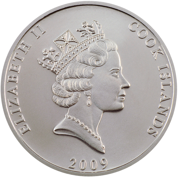 Die Silber Anlagemünze Cook Islands "Bounty" wird seit 2008 geprägt. Die Vorderseite zeigt das Segelschiff "Bounty" bekannt durch die Meuterei 1777 auf der Überfahrt von Tahiti zu den Kolonien auf den Antillen. Die Bounty sollte Pflanzensetzlinge zur Bekämpfung der dortigen Hungersnot überführen. Der Kapitän Wiliam Blight wurde mit einigen Besatzungsmitgliedern in einem Boot ausgesetzt, das Schiff in Brand gesetzt und versenkt ("Bounty Bay" auf Pitcairn). Das Revers zegt die englische Königin Elisabeth II zum Motiv umrandet vom Prägejahr und dem Münznamen "Cook Islands".