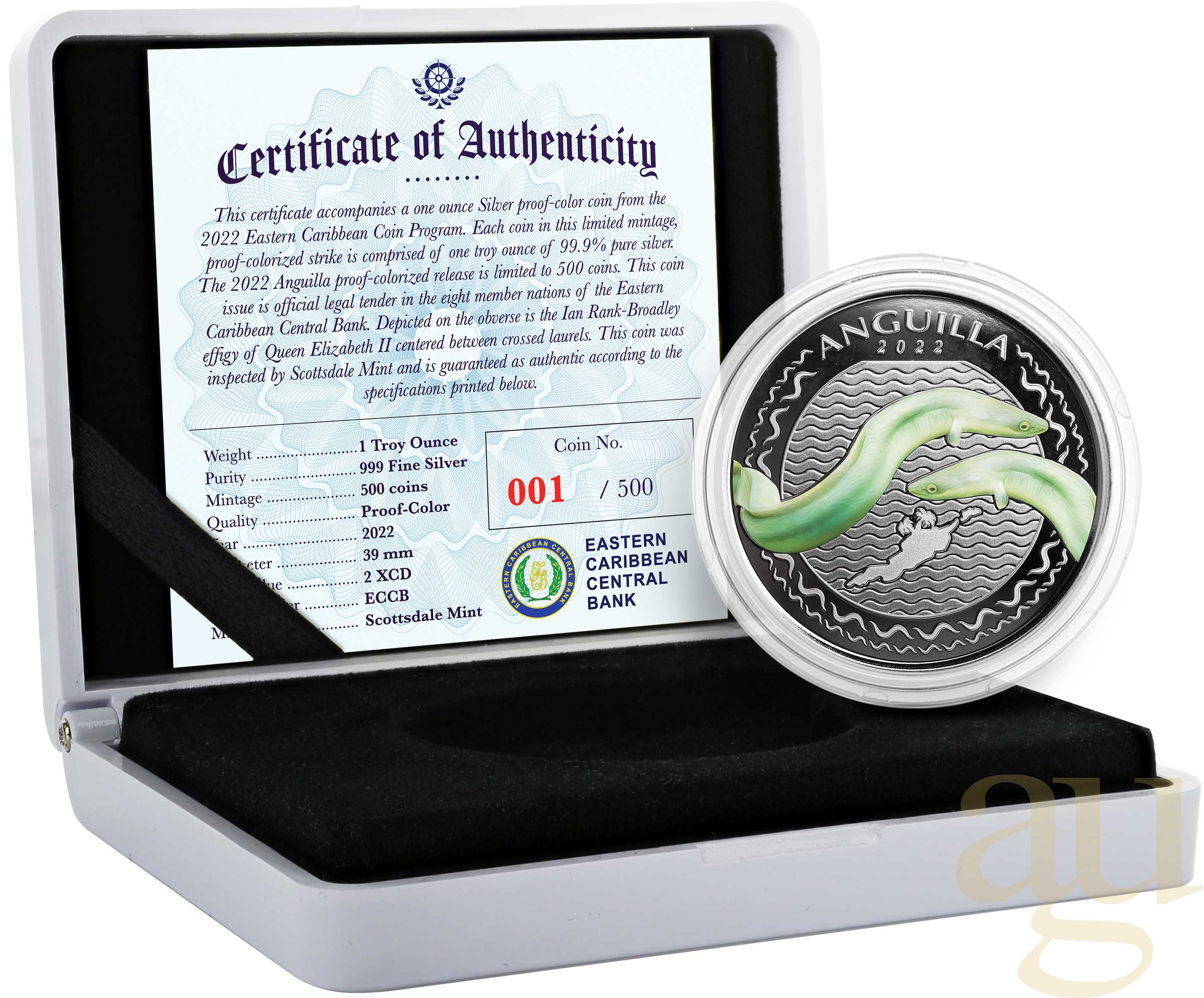 Produktinformationen "1 Unze Silbermünze EC8 Anguilla - Eel 2022 - coloriert"