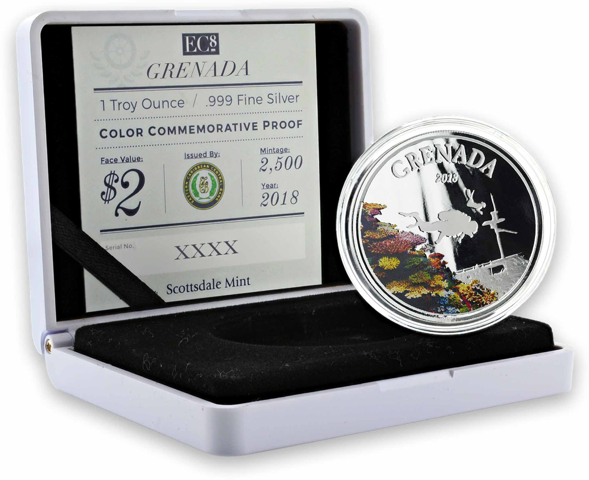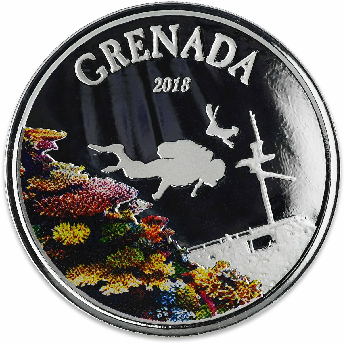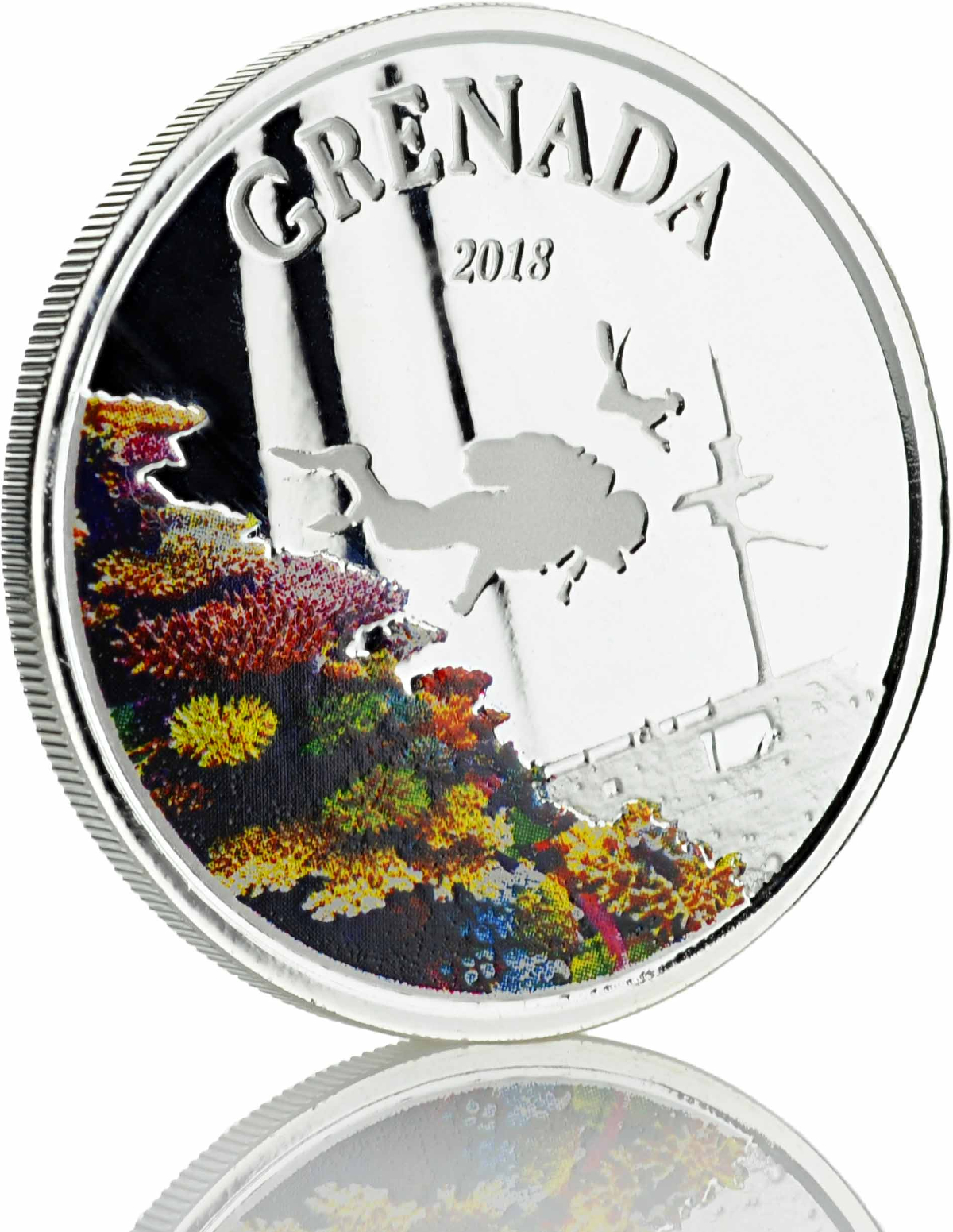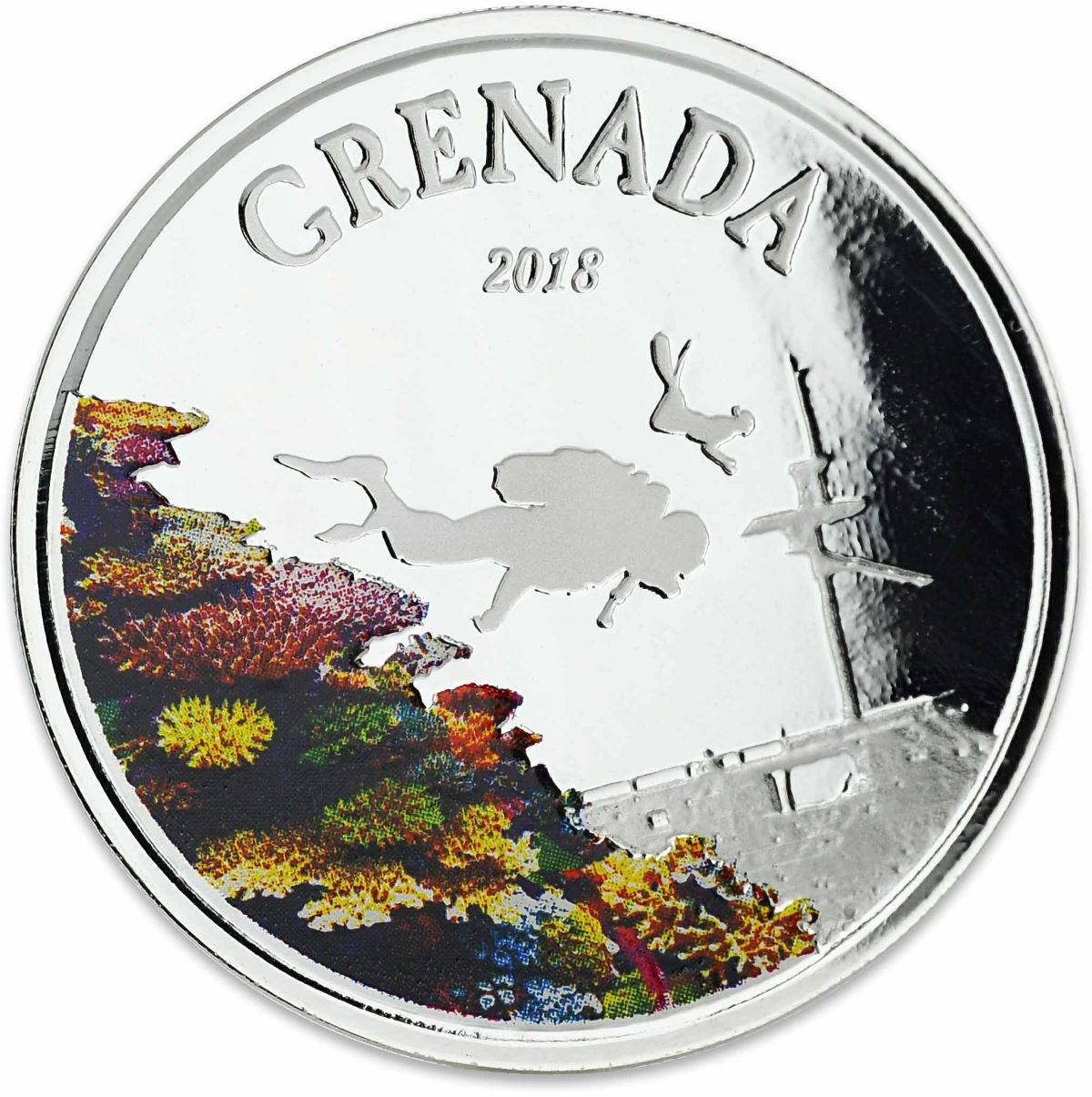 Produktinformationen "1 Unze Silbermünze EC8 Grenada - Diving Paradise 2018 - coloriert"
