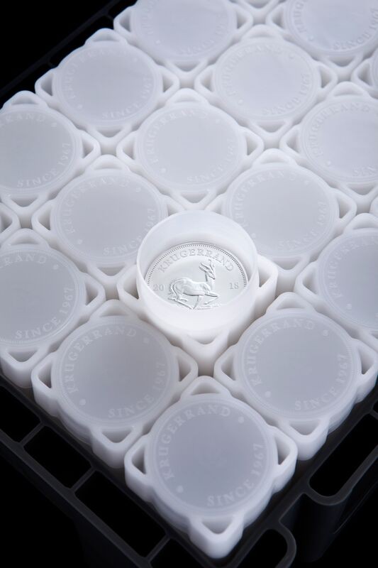 Silber Krügerrand Münze zur Kapitalanlage zum Anlagepreis. Die Münzen werden a 25 Stück in einer Münztube aus Plastik von der Rand Refinery in Südafrika verpackt. Einzelstücke werden von uns in Münztaschen ausgeliefert. In der großen Masterbox befinden sich 500 Silbermünzen.
