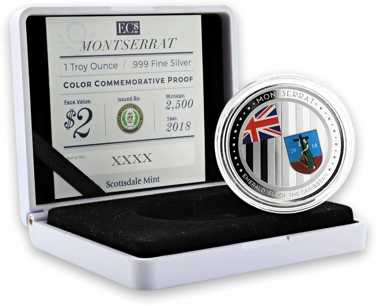 1 Unze Silbermünze EC8 Montserrat - Emerald Isle of the Caribbean 2018 - coloriert